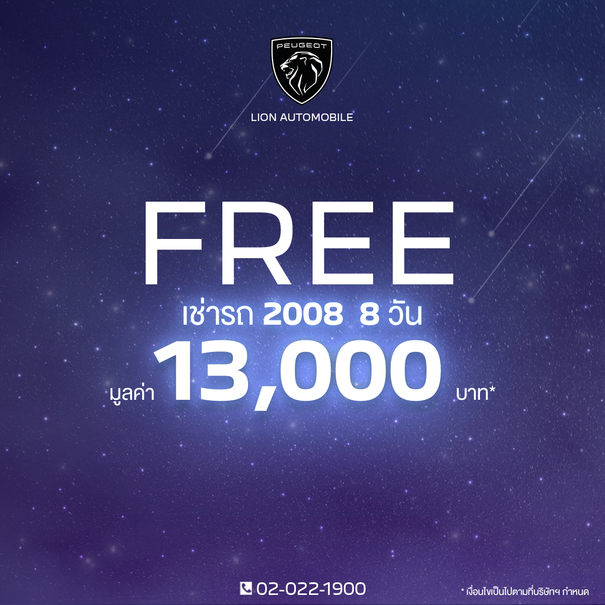 • ฟรี! เช่ารถรุ่น 2008 จำนวน 8 วัน มูลค่า 13,000 บาท*