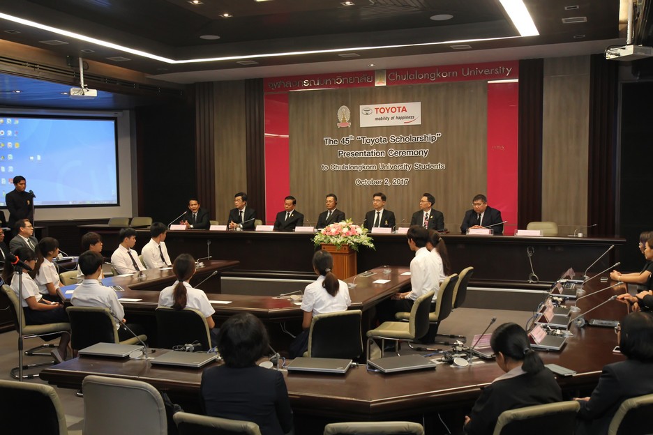 จากการดำเนินธุรกิจของโตโยต้าในประเทศไทยครบ 55 ปี โตโยต้ามุ่งมั่นที่จะขับเคลื่อนความสุข สู่สังคมไทย ผ่านการดำเนินกิจกรรมต่างๆ ภายใต้สโลแกน “โตโยต้า ขับเคลื่อนความสุข” โดยหนึ่งในกิจกรรมที่สำคัญ คือ “การสนับสนุนด้านการศึกษา” โดยโตโยต้าเล็งเห็นว่าการศึกษาเป็นรากฐานที่สำคัญของการพัฒนาสังคมและประเทศอย่างยั่งยืน จึงส่งเสริมการศึกษาของเยาวชนไทย ผ่านการมอบทุนสนับสนุนสำหรับนิสิตจุฬาลงกรณ์มหาวิทยาลัยที่มีผลการเรียนดี