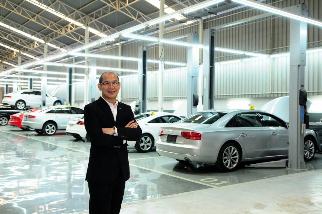 ซึ่งนอกจากจะมีผู้จัดการส่วนงานบริการเป็นชาวไอริช ที่มีประสบการณ์ยาวนานกับ Audi ถึง 28 ปี เคยคุมดีลเลอร์ที่ใหญ่ที่แอฟริกาใต้มาก่อน เรายังสนับสนุนให้หัวหน้าช่างสอบระดับ Master Technician เป็นระดับสูงสุดของช่าง Audi ซึ่งเป็นคนไทยคนแรกที่ได้รับใบประกาศเกียรติบัตรจากโครงการนี้ ในส่วนของช่างเทคนิคมีการส่งทีมไปอบรมที่ประเทศสิงคโปร์