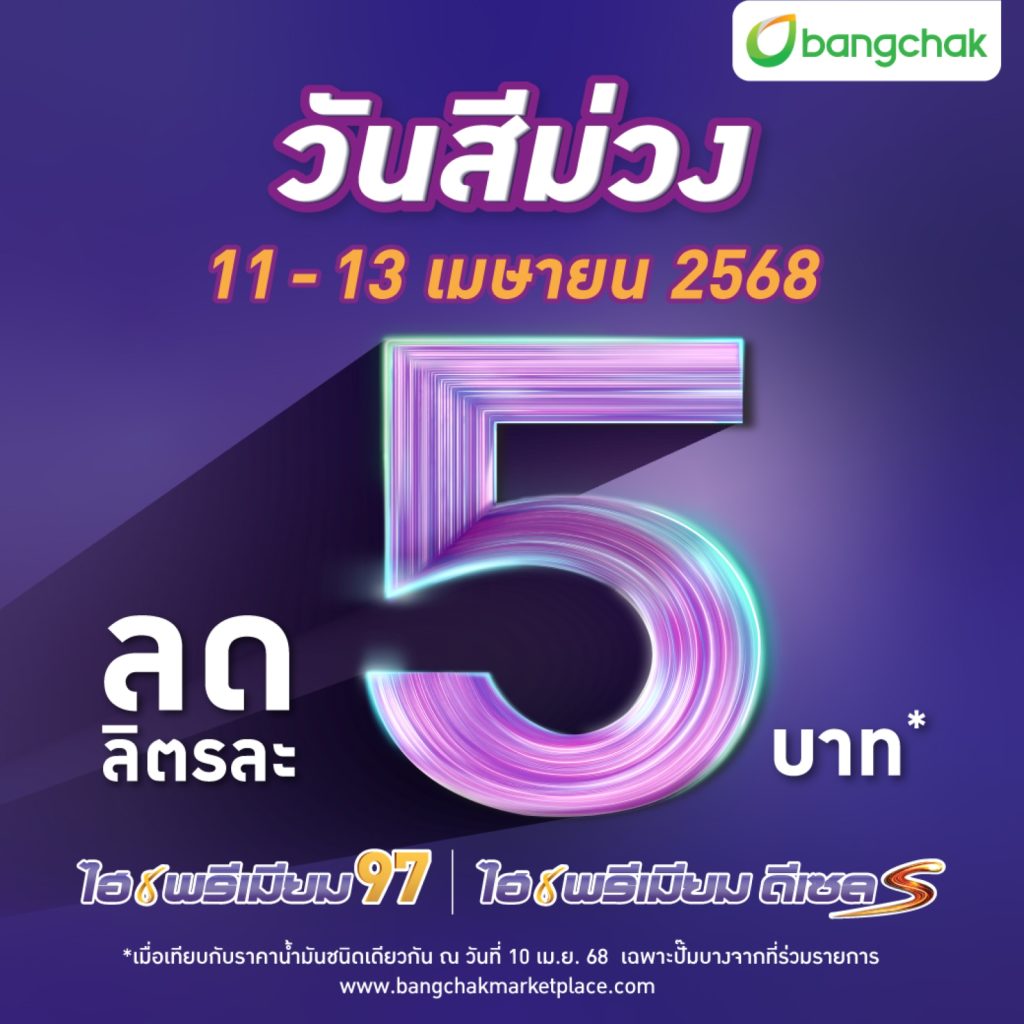 บางจากฯ จัดโปรพิเศษเฉพาะน้ำมันกลุ่มไฮพรีเมียม ลดลิตรละ 5 บาท ทั่วประเทศ รับการเดินทางช่วงสงกรานต์ 11 – 13 เม.ย. 68 นี้ เท่านั้น !