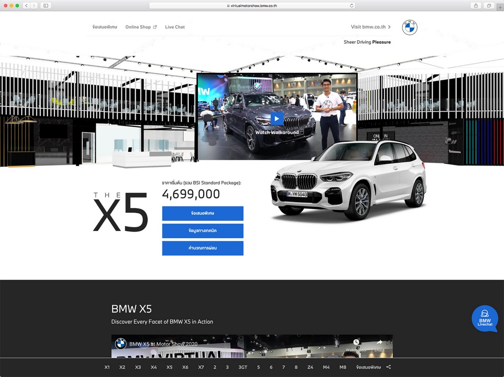 ภายในเว็บไซต์ของ BMW Virtual Motor Show 2020 ลูกค้าจะได้พบกับบรรยากาศเสมือนจริงของบูธบีเอ็มดับเบิลยูภายในงานมอเตอร์โชว์ 2020 ครอบคลุมทุกพื้นที่อย่างเต็มอรรถรสครบทุกโซน โดยสามารถเยี่ยมชมรถยนต์บีเอ็มดับเบิลยูที่จัดแสดงในงานพร้อมเจาะลึกทุกรายละเอียดได้ทุกรุ่น ทั้งฟีเจอร์ไฮไลท์รวมถึงการตกแต่งภายนอกและภายใน ผ่านวิดีโอรีวิวรอบคันรถแบบ 360 องศา โดยมีผู้เชี่ยวชาญด้านผลิตภัณฑ์จากบีเอ็มดับเบิลยูพร้อมให้ความช่วยเหลือและไขทุกข้อสงสัยแบบเรียลไทม์ สำหรับลูกค้าที่สนใจสั่งจองรถยนต์บีเอ็มดับเบิลยู พร้อมคำแนะนำด้านชุดแต่งภายนอกและภายใน รวมทั้งอุปกรณ์เสริมต่างๆ ยังสามารถสอบถามรายละเอียด ราคา และโปรโมชั่นต่างๆ ผ่านการพูดคุยโต้ตอบกับพนักงานขายของบีเอ็มเบิลยูและผู้เชี่ยวชาญด้านอุปกรณ์ตกแต่งได้ทันทีด้วยระบบ VDO Call หรือข้อความแชท ทั้งยังสามารถสั่งซื้อรถยนต์ด้วยตัวเองโดยตรงผ่านช่องทางออนไลน์ได้อีกด้วย โดยลูกค้าจะได้รับสิทธิประโยชน์หลากหลายเช่นเดียวกันกับข้อเสนอภายในงานมอเตอร์โชว์ 2020 รวมถึงโปรแกรมบำรุงรักษา BSI ที่ขยายระยะเวลาบริการนานถึง 6 ปี/ 120,000 กม. เพิ่มความอุ่นใจในการดูแลรถยนต์และเติมเต็มที่สุดแห่งสุนทรียะแห่งการขับขี่ พร้อมข้อเสนอสุดพิเศษอื่นๆ อีกมากมาย