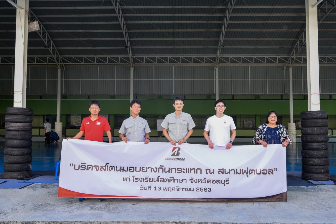 กลุ่มบริษัทเครือ บริดจสโตน ในประเทศไทย นำโดย บริษัท บริดจสโตน สเปเชียลตี้ ไทร์ แมนูแฟคเจอริ่ง (ประเทศไทย) จำกัด นำโดย มร. โนบุโอะ โอคุโนะ ผู้จัดการทั่วไป ร่วมด้วยบริษัท บริดจสโตนเซลส์ (ประเทศไทย) จำกัด นำโดย มร. ชิน นาคามิชิ ผู้อำนวยการสายงานการตลาดและกลยุทธ์ และร่วมมือกับอีกหนึ่งบริษัท คือ บริษัท บริดจสโตน ไทร์ แมนูแฟคเจอริ่ง (ประเทศไทย) จำกัด พร้อมด้วยพนักงานเครือ บริดจสโตน ในประเทศไทย ร่วมส่งมอบยางกันกระแทกที่ติดตั้งล้อมเสารอบสนามฟุตบอล โรงเรียนโสตศึกษา จังหวัดชลบุรี รับมอบโดย คุณธนภร ฤทธิแผลง ผู้อำนวยการโรงเรียน โดยถือว่าเป็นการใช้ประโยชน์จากยางบริดจสโตนรีไซเคิลเพื่อส่งเสริมความปลอดภัยแก่เยาวชน และพร้อมมุ่งสร้างจิตสำนึกให้พนักงานเข้ามีส่วนร่วมช่วยกันสร้างความยั่งยืนแก่สังคมตามเจตนารมณ์เรื่องความรับผิดชอบต่อสังคม “Our Way to Serve” ของบริดจสโตนทั่วโลกผ่านการเชื่อมโยงความสัมพันธ์อันดีภายในชุมชน