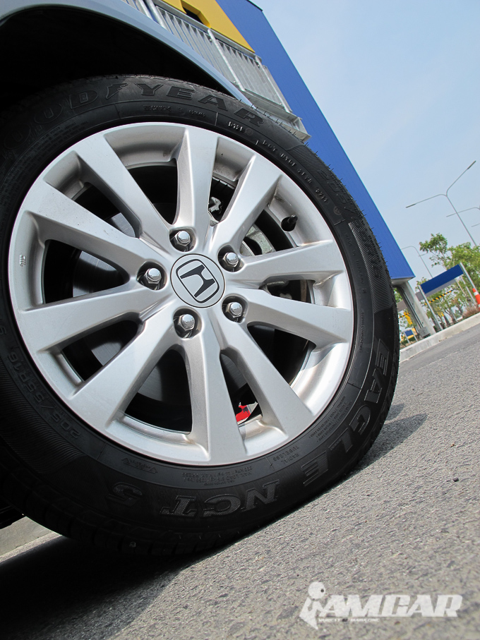 พอเริ่มสตาร์ทรถเราก็ต้องมาทำความรู้จักกับเจ้า i-MID ที่สามารถปรับเซ็ททุกอย่างในรถ โดยใช้เพียงปุ่มกดบนพวงมาลัย แต่ระหว่างที่ขับไม่สามารถปรับอะไรได้เลย เพราะเป็นระบบป้องกันเพื่อความปลอดภัยในการขับขี่ของ HONDA ดังนั้นเราจึงต้องจอดรถเพื่อปรับตั้งค่าต่างๆ ให้เรียบร้อยทั้ง Up Load Wallpaper เป็นรูปที่เราต้องการ, เปลี่ยนสีหน้าจอ, ตั้งค่าไฟส่องสว่างในรถ, ตั้งค่าล็อคประตู และเชื่อมต่อโทรศัพท์ให้เรียบร้อย เพียงใช้การคอนโทรลจากปุ่มฟังค์ชั่นด้านซ้ายของพวงมาลัย จากนั้นผมก็เริ่มเดินทางต่อเพื่อลองสมรรถนะของเครื่องยนต์ ผมว่าความแรงไม่ได้ต่างจากรุ่นเดิมมากนัก ยังคงเป็นเครื่องยนต์ 1.8 ลิตรที่ขับสนุกเช่นเดิม ทั้งในรอบต้นและรอบปลาย ซึ่งความเร็วสูงสุดที่ผมทำได้ คือ 197 กม./ชม. แต่ที่น่าสนใจ คือ โหมด “ECON” เจ้าปุ่มเขียวๆ ด้านขวาของคอนโซล โดยเจ้าปุ่มนี้กดลงไปแล้ว จะคำนวนค่าการสั่งงานให้ลิ้นปีกผีเสื้อไฟฟ้าแบบอิเล็กทรอนิกส์เพื่อการตอบสนองให้ดีขึ้น โดยปรับเกียร์อัตโนมัติให้สอดคล้องกับการทำงานของเครื่องยนต์ ระบบปรับอากาศ ปรับจังหวะการเปิด-ปิด คอมเพรสเซอร์ให้เหมาะสม ซึ่งทั้งหมดนี้ช่วยเพิ่มความประหยัดน้ำมันให้กับตัวรถมากขึ้น การใช้โหมด “ECON” กับไม่ใช้ Feeling การขับขี่ก็ต่างกัน ถ้าต้องการให้ได้ Feeling การขับแบบ Sport แบบรุ่นเดิมอัตราเร่งดีๆ ขับสนุกๆ แต่ใช้เชื้อเพลิงมากสักหน่อย ก็ต้องเอาโหมด “ECON” ออก เพราะความเร็วต้องมาคู่กับการบริโภคน้ำมันที่เพิ่มขึ้นอยู่แล้ว แต่ถ้าคุณต้องการขับแบบประหยัดน้ำมันสูงสุด เพียงกด “ECON” แม้ความแรงจะหายไปบ้าง แต่ความประหยัดมีมาให้คุณแน่นอนครับ ดังนั้นทางวิศวกรจึงเพิ่มระบบนี้ขึ้นมา เพื่อเพิ่มสไตล์การขับขี่ให้หลากหลายมากขึ้น