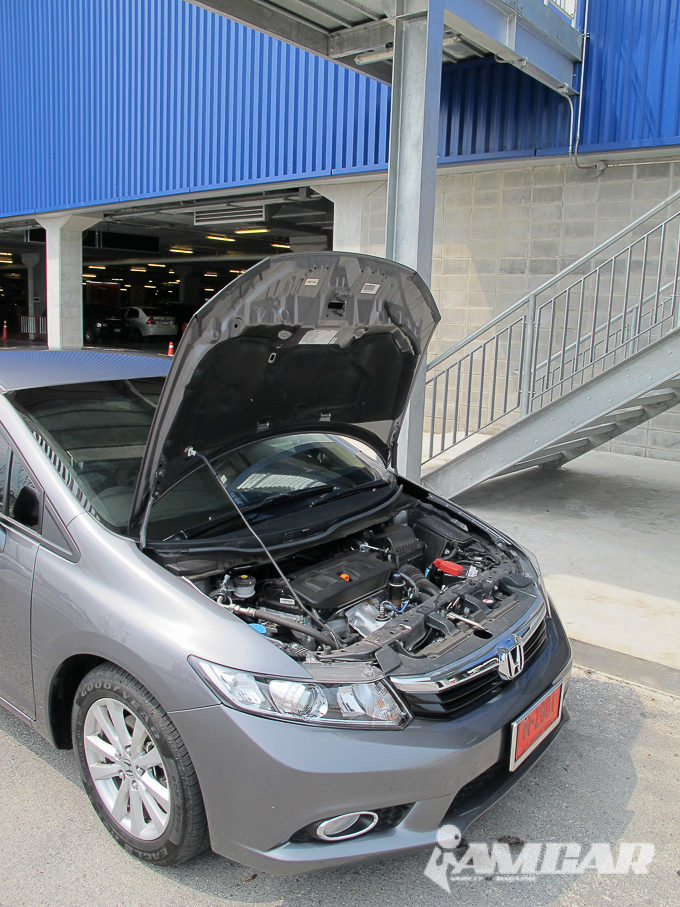 All New HONDA Civic คันที่ผมใช้ทดสอบเป็น 1.8 E AT Navi เครื่องยนต์ เป็น SOHC 4 สูบ 16 วาล์ว i-VTEC 1.8 ลิตร เสื้อสูบผลิตจากอะลูมิเนียมที่มีความทนทานสูง และมีการลดแรงเสียดทานของชิ้นส่วนภายในขณะเคลื่อนที่ ท่อร่วมไอดีแบบแปรผัน 2 จังหวะ และผลิตจากวัสดุแบบ Composite พร้อมเกียร์อัตโนมัติ 5 สปีด ควบคุมด้วยระบบอิเล็กทรอนิกส์ Grade Logic Control พร้อม Direct Control และ Shift Hold System สามารถรีดแรงม้าสูงสุดได้ 141 แรงม้า ที่ 6,500 รอบ/นาที ส่วนแรงบิดสูงสุดอยู่ที่ 174 นิวตัน-เมตร ที่ 4,300 รอบ/นาที และที่สำคัญสามารถใช้น้ำมัน E85 ได้ด้วย ตามคอนเซ็ปท์ของ HONDA ที่จะนำพลังงานทดแทนทุกรูปแบบมาใช้ เพื่อรักษาสิ่งแวดล้อม