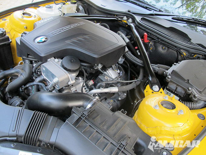 ใต้ฝากระโปรงที่กินพื้นที่ไปเกิน 40% ของตัวรถ ได้ซ่อนอนุกรมความแรงแบบ 4 สูบ 16 วาล์ว ความจุกระบอกสูบ 1,997 ซีซี. ที่ใช้ระบบการจ่ายน้ำมันเชื้อเพลิงแบบ High – Precision Injection พร้อมระบบอัดอากาศแบบ TwinPower Turbo ที่มีช่องไอเสีย 2 พอร์ตต่อเทอร์โบ 1 ตัว หรือที่เรียกว่า “Twin Scroll” ทำให้การไหลออกของไอเสียเป็นไปอย่างรวดเร็ว นอกจากนี้ยังมี Double VANOS ที่เข้ามาช่วยให้วาล์วทั้งด้านไอดี-ไอเสียสามารถแปรผันได้ตามความต้องการของเครื่องยนต์ และยังมี VALVETRONIC ที่คอยควบคุมลิ้นปีกผีเสื้อให้ทำงานสัมผัสกับ Double VANOS ให้อากาศเข้าและออกในปริมาณที่เหมาะสมกับการใช้งาน เพราะถ้าอากาศเข้ามากเกินไปจะทำให้กล่องฉีดน้ำมันมากตามไปด้วย ทำให้สิ้นเปลืองอัตราน้ำมันมากโดยใช่เหตุ เครื่องยนต์บล็อคนี้จึงสามารถรีดแรงม้าออกมาได้มากถึง 184 แรงม้า ที่ 5,000 – 6,250 รอบต่อนาที ส่วนแรงบิดมากถึง 270 นิวตัน-เมตร ที่ 1,250-4,500 รอบต่อนาที ซึ่งบอกได้ว่าเทอร์โบเปิดใช้งานในรอบที่ต่ำมากๆ แสดงว่าอัตเร่งในรอบต้นต้องจัดจ้านมากครับ