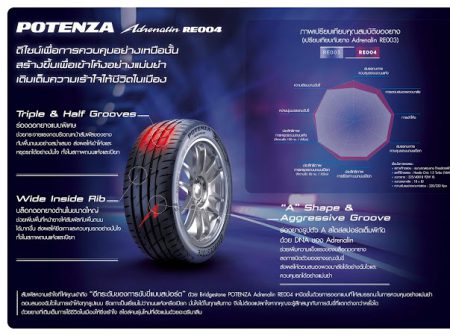 ทั้งนี้ บริดจสโตน ได้แนะนำผลิตภัณฑ์ยางรถยนต์รุ่นใหม่ Bridgestone Potenza Adrenalin RE004 อย่างเป็นทางการอีกครั้ง หลังจากเปิดตัว และวางจำหน่ายไปเมื่อเดือนเมษายน ที่ผ่านมา ทางออนไลน์ ถึงแม้ว่า Potenza Adrnalin RE004 จะเป็นยางรถยนต์ซึ่งจัดอยู่ในกลุ่มบนสุดของยางสปอร์ตสมรรถนะสูง แต่กระแสตอบรับกลับดีเกินคาด โดยจำหน่ายได้มากกว่า 48% เมื่อเทียบกับรุ่นเดิม (Potenza RE003) ในช่วงเดียวกัน แม้ปีนี้จะประสบปัญหาจากไวรัสโคโรน่าโควิด-19 ก็ตาม