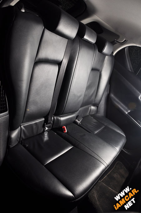เปิดประตูมาชมการออกแบบภายในบ้างดีกว่า ด้วยการคำนึงถึงอรรถประโยชน์ใช้สอย และความสะดวกสบาย ภายใต้หลักการ HMI (Human-Machine Interface) โดยการแบ่งโซนอย่างชัดเจน ทั้งในส่วนของการควบคุม และการแสดงผล ด้วยการออกแบบดังกล่าว ทำให้เราไม่จำเป็นต้องละสายตาจากการมองเส้นทาง ทำให้เกิดความสะดวกสบาย และความปลอดภัยตลอดการเดินทาง สิ่งที่โดดเด่นที่สุดของภายใน คือ อุปกรณ์อำนวยความสะดวกระดับ First Class EMV Remote Control Device ด้วยชุดควบคุมบริเวณคอนโซลกลาง รูปทรงแบบเม๊าส์คอมพิวเตอร์ ทำให้การควบคุมฟังก์ชั่นการใช้งานต่างๆเป็นไปอย่างง่ายดาย โดยแสดงผลผ่าน หน้าจอแบบ Electro-Multi Vision (EMV) พร้อมระบบแผนที่นำทาง ซึ่งมีฟังค์ชั่นการใช้งานง่ายๆ ลักษณะการใช้เหมือนการ Click เม๊าส์คอมพิวเตอร์ที่บ้าน เบาะหน้าเป็นแบบสปอร์ตโอบกระชับร่างกายได้ดีมาก และยังคงความนิ่มนวลไว้ได้เป็นอย่างดี พร้อมระบบปกป้องผู้โดยสารจากการชนด้านท้าย หมอนรองศีรษะแบบ Passive Headrest ให้การปกป้องผู้โดยสาร เมื่อเกิดการชนจากด้านท้าย โครงด้านข้างของเบาะจะยุบตัว ทำให้หมอนรองศรีษะ เคลื่อนเข้ารองรับศรีษะของผู้โดยสาร ช่วยลดการบาดเจ็บที่บริเวณกระดูกต้นคอ