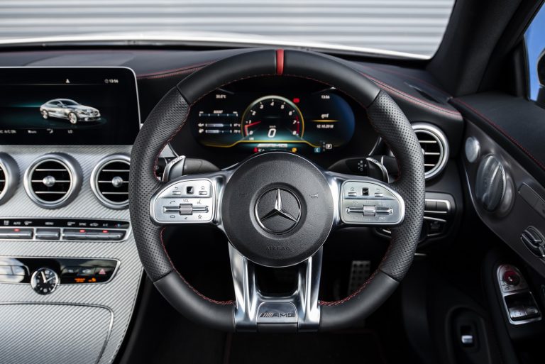 โดยมีระบบความบันเทิงที่แสดงผลผล่านหน้าจอ Multi Media ขนาด 10.25 นิ้ว รองรับชุดเครื่งเสียง MB Audio 20 จาก Burmester ซึ่งควบคุมได้อย่างง่ายดายจาก Touchpad และ Controller ตามด้วยการติดตั้งชุดพวงมาลัยรุ่นใหม่ดีไซน์สปอร์ตแบบ AMG Performance Steering Wheel หุ้มหนัง Nappa Leather พร้อมระบบมัลติฟังค์ชั่นบนก้านพวงมาลัย สำหรับควบคุมแผงหน้าปัด, ระบบควบคุมความเร็ว Cruise Control, ระบบมัลติมีเดีย, ระบบโทรศัพท์ ตลอดจนระบบสั่งการด้วยเสียง ในขณะที่ด้านหลังพวงมาลัยมากับชุดคันเกียร์ที่บริเวณคอ พร้อมด้วยโหมดเกียร์ธรรมดจาก Touchpad ทั้ง 2 ข้าง