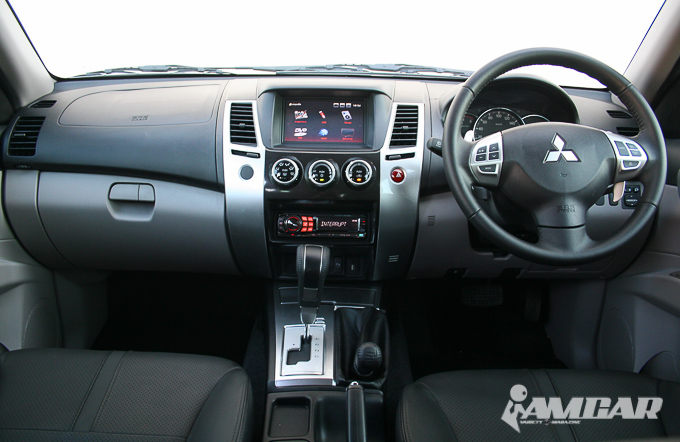 ภายในกว้างขวางเบาะนั่งแบบ 3 แถว รองรับผู้โดยสาร 7 ที่นั่ง สามารถปรับเปลี่ยนรูปแบบการใช้งานได้มากถึง 5 รูปแบบ มีการปรับโทนสีของภายในใช้สีดำเป็นหลักตัดด้วยสีบอร์นเพื่อความหรูหรา เบาะที่นั่งคนขับและผู้โดยสารตอนหน้าปรับระดับด้วยระบบไฟฟ้าได้ถึง 8 ทิศทาง พวงมาลัยแบบ 3 ก้าน เติมระบบควบคุมความเร็วอัตโนมัติ (Cruise control) สวิทช์ควบคุมวิทยุที่พวงมาลัย และ Paddle Shift สำหรับเปลี่ยนเกียร์ จุดเด่นที่สุดคงต้องยกให้อุปกรณ์ความบันเทิงเครื่องเล่น DVD,VCD,CD MP3 ที่ง่ายต่อการใช้งาน มีช่องต่ออุปกรณ์ USB สามารถเชื่อมต่อ iPod / iPhone และจอภาพด้านหน้าแบบหน้าจอสัมผัส (Touch Screen) ขนาด 7 นิ้ว พร้อมจอภาพแอลอีดี (LED) แบบ WIDE Screen ขนาด ใหญ่ 10.2 นิ้วสำหรับผู้โดยสารตอนหลัง ติดตั้งระบบนำทาง รองรับแผนที่ในรูปแบบ 3 มิติ พร้อมระบบปรับอากาศสำหรับผู้โดยสารแถวที่ 2 และ 3 เพื่อความสบายทั่วทั้งคัน ความโดดเด่นในเรื่องอเนกประสงค์การใช้งาน ทัศนวิสัยด้านหน้าที่ดี และการเก็บเสียงที่ดีมีพร้อมใน MITSUBISHI Pajero Sport เป็นทุนเดิมอยู่แล้ว แค่เติมความบรรเทิงที่ใช้งานง่ายๆ ระบบนำทางที่ทันสมัยเข้าไป เพื่อให้ MITSUBISHI Pajero Sport มีความครบถ้วนในการเดินทางมากขึ้น ทำให้คุณและทุกคนในครอบครัวสบายตลอดการเดินทาง