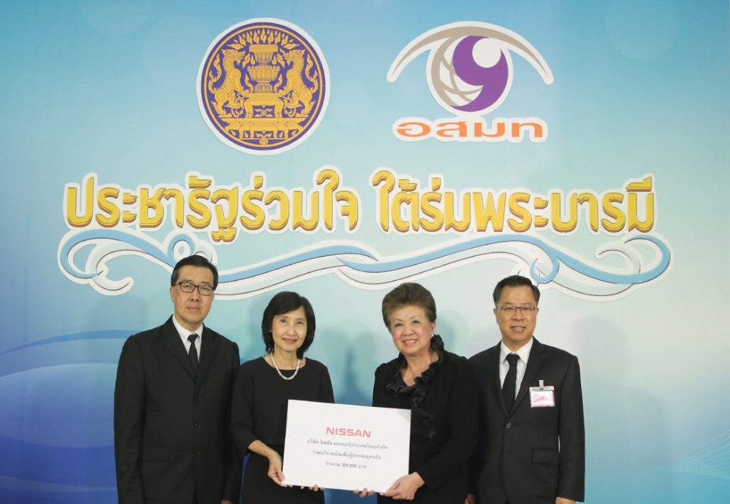 ซึ่งเร็วๆนี้ บริษัท นิสสัน มอเตอร์ (ประเทศไทย) จำกัด มอบเงินบริจาคจำนวน 300,000 บาท ให้แก่คุณ หิรัญญา สุจินัย เลขาธิการ สำนักงานคณะกรรมการส่งเสริมการลงทุน เพื่อนำไปช่วยเหลือผู้ประสบอุทกภัยในภาคตะวันออกเฉียงเหนือ ภายใต้ความร่วมมือกับสำนักงานคณะกรรมการส่งเสริมการลงทุน โดยมีคุณเพียงใจ แก้วสุวรรณ รองกรรมการผู้จัดการใหญ่ ฝ่ายรัฐกิจสัมพันธ์ บริษัท นิสสัน มอเตอร์ (ประเทศไทย) จำกัด เป็นผู้ส่งมอบ