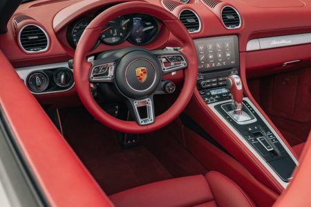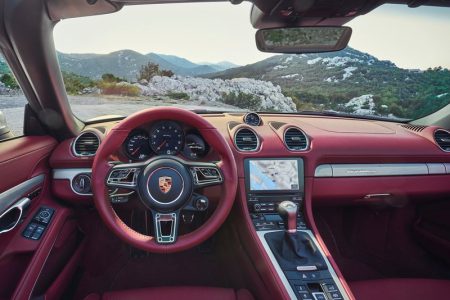ภายในห้องโดยสาร ตกแต่งด้วยวัสดุหนังแท้ Bordeaux Leather Interior ผ้าหลังคาประทุนโดดเด่นด้วยสีแดง พร้อมโลโก้ 25 ปี แต่หากไม่ชอบก็สามารถเปลี่ยนเป็นสีดำได้ เบาะนั่งแบบสปอร์ตปรับได้ 14 ทิศทาง พวงมาลัยแบบสปอร์ตหุ้มหนัง GT multifunction กาบบันไดพร้อมโลโก้ Boxster 25