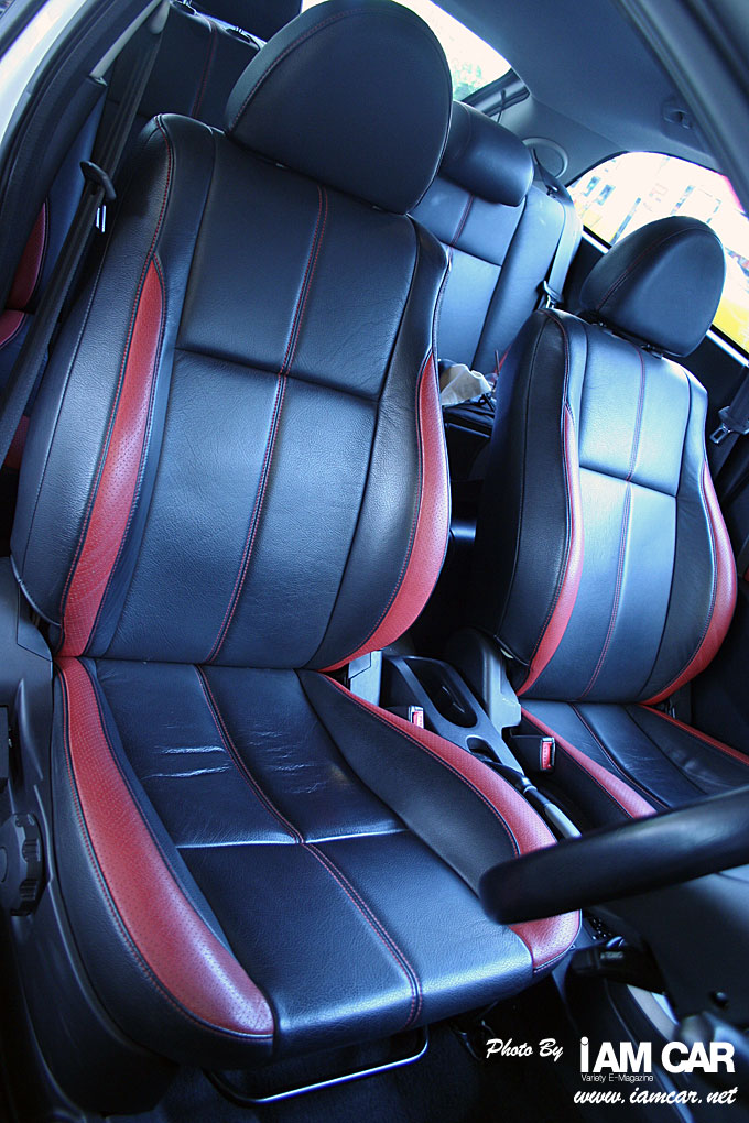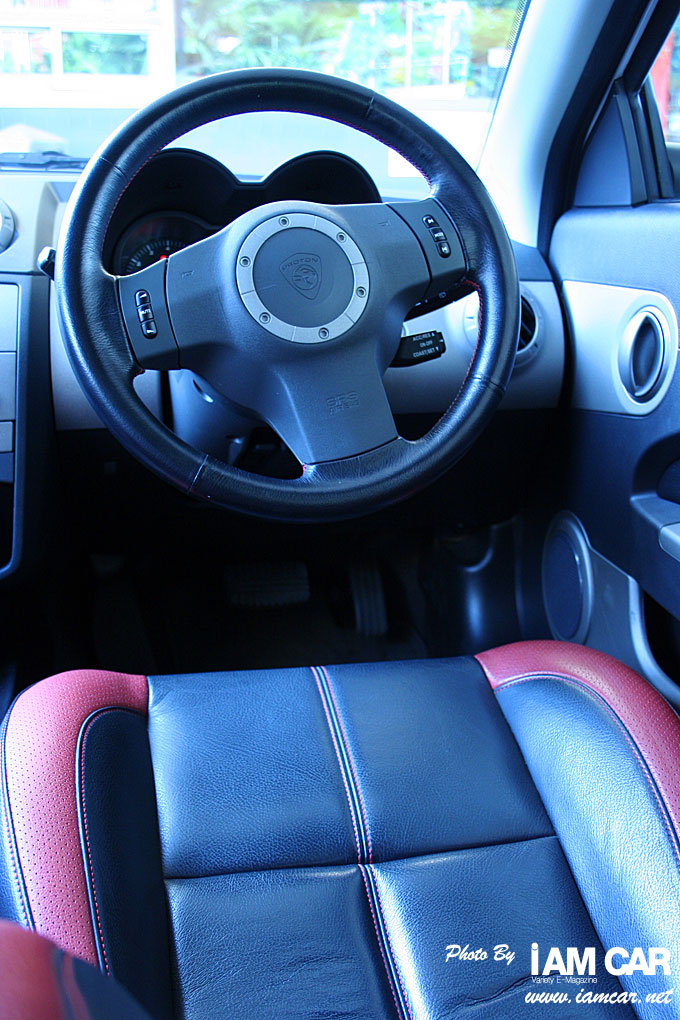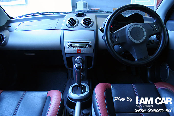 ภายใน PROTON Neo CPS ( โปรตอน นีโอ ) จัดการปรับเปลี่ยนให้ดูสปอร์ตเต็มร้อยเปอร์เซ็นต์โดยเล่นกันสีแดงสลับ ดำ ผมลองนั่งลงไปที่เบาะ จะรู้สึกถึงฟิวรถแข่งทันที