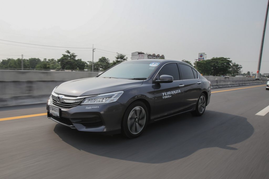 ขากลับเส้นทางเดิมขอขยับมาขับ Honda Accord บ้าง เสน่ห์ของคนนี้ต้องเป็นเรื่องของการควบคุมที่ดี ช่วงล่าง Sport นิดๆ คราวนี้เราก็ต้องไปลองในทางโค้งต่างๆ การเปลี่ยนเลนด้วยความเร็วสูง ใน TURANZA T005A มีการปรับ Compound ด้วยนวัตกรรมใหม่ๆ การเรียงตัวที่ละเอียดมากขึ้น ซึ่งอันนี้ส่งผลแน่นอนให้ การเข้าโค้งสามารถไปได้เร็วขึ้น ควบคุมง่ายขึ้น ระยะเบรกสั้นลงชัดเจน แต่ที่ได้เพิ่มขึ้นมาคือเก็บเสียงดีขึ้น เสียงยางที่สะท้อนจากการที่ยางสัมผัสกับพื้นเราจะได้ยินน้อยลงด้วยนะครับ