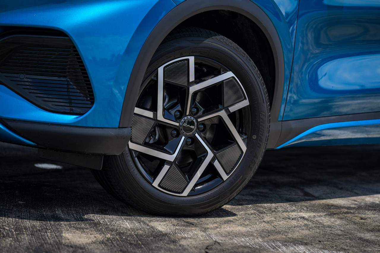 ส่วนจุดเด่นที่น่าสนใจต้องยกให้งานดีไซน์ที่มาในแนวล้ำยุค ซึ่งสื่อถึงความเป็นรถยนต์พลังไฟฟ้าได้ค่อนข้างชัด ภายใต้หลักอากาศพลศาสตร์ เช่น กระจังหน้าแบบปิด เพราะไม่จำเป็นต้องใช้ “ลม” เข้าไประบายความร้อนในห้องเครื่องยนต์ ขณะที่ล้ออัลลอยด์สีทูโทน ก็มากับดีไซน์ที่ต้องบอกว่า “ความสวย” อาจต้องใช้เวลาซักพักให้ “ชินตา” แต่เหนืออื่นใด ก็น่ามาจากเหตุผลในเรื่องของงานอากาศพลศาสตร์อย่างที่ได้กล่าวไว้ ส่วนขนาดที่ใช้ก็คือ 18 นิ้ว พร้อมยางขนาด 215/55 R18 ตลอดจนติดตั้งหลังคา Panoramic Sunroof มาให้เป็นอุปกรณ์มาตรฐาน