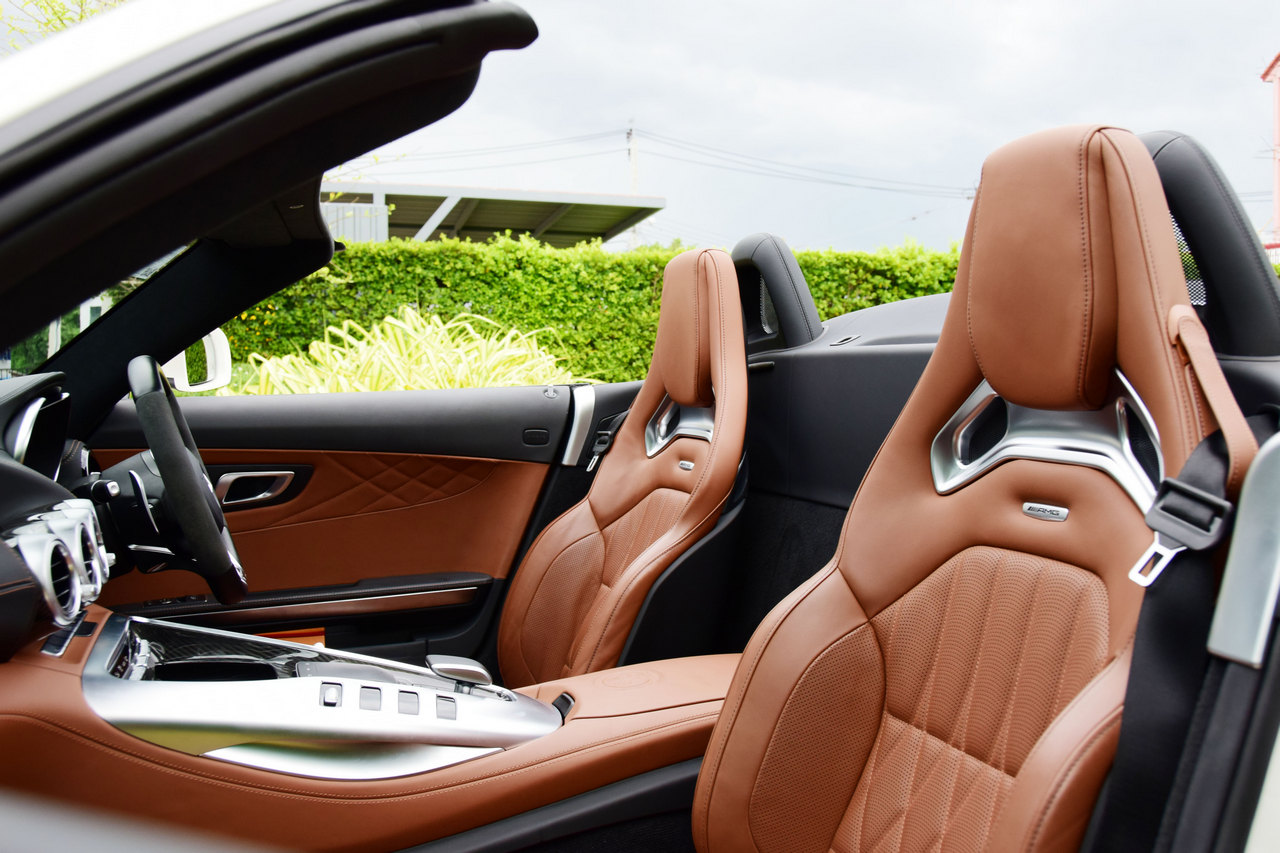 ส่วนภายใน “ชัดเจน” กับความเป็นรถ 2 ที่นั่ง แถมในทุกกระเบียดนิ้วยังมาพร้อมกับการเลือกใช้วัสดุที่หรูหราสมราคา และมาตรฐานของ Mercedes-AMG ไม่ว่าจะเป็น พวงมาลัยทรง D–Shape, เบาะนั่งทรงสปอร์ตที่ออกแบบมาได้อารมณ์ใกล้เคียง Bucket Seat นอกจากนี้ยังแฝงด้วยการสื่อถึงขุมพลังผ่านงานดีไซน์ และการจัดวางปุ่มควบคุมบน คอนโซลเกียร์ ขณะที่ระบบความบันเทิง และสิ่งอำนวยความสะดวกเต็มรูปแบบเท่าที่คุณนึกได้ว่าอยากให้มี … เอาเป็นว่าเราขอตัดบทเรื่องรายละเอียดดีกว่า เพราะมันเป็นเรื่องง่ายมาก หากคุณต้องการดูข้อมูล