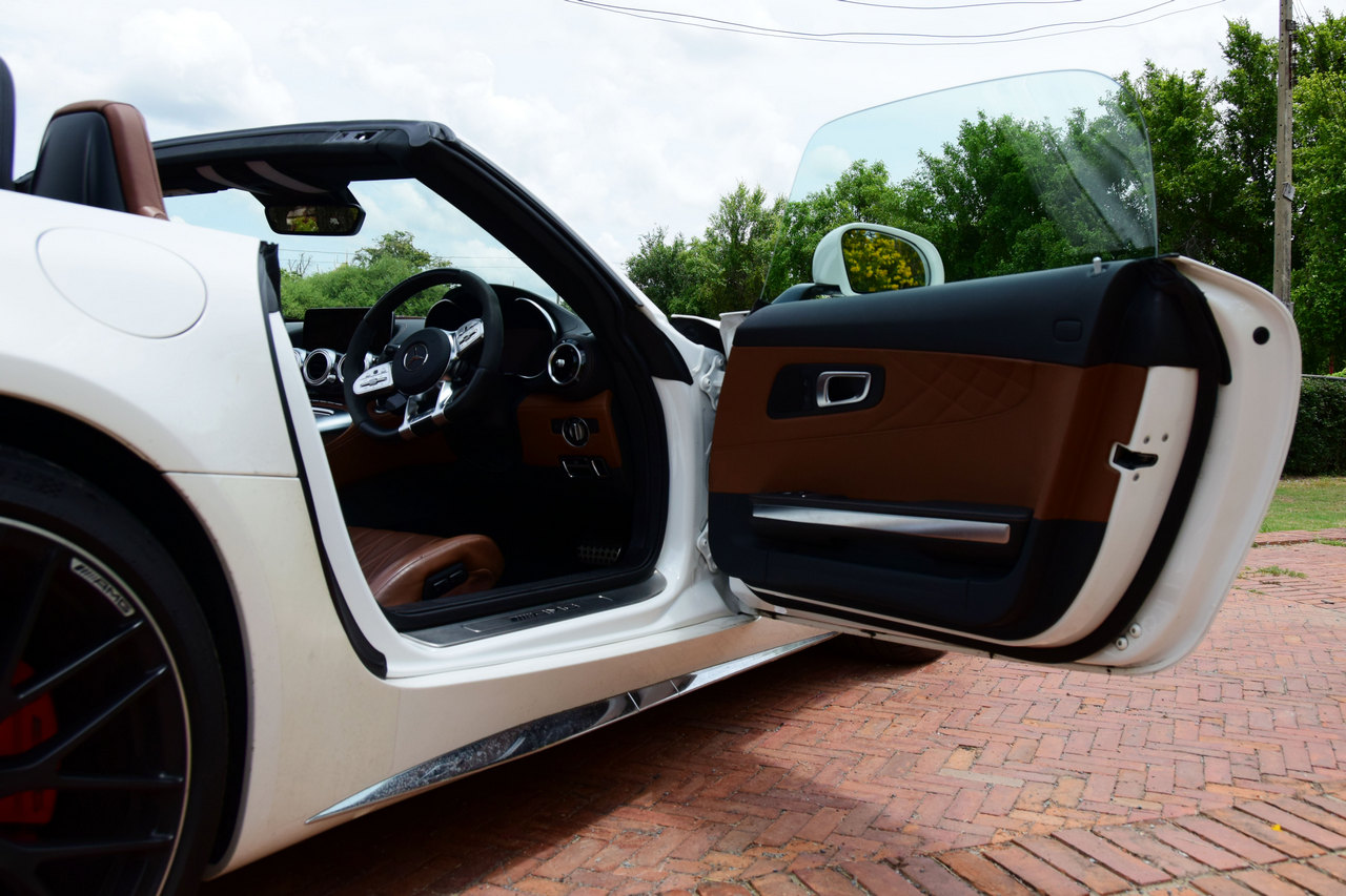 ซึ่งนั่นล่ะครับ คือสิ่งที่สร้าง “ความสมบูรณ์แบบชนิดที่ไม่ต้องแต่งเติม” บนตัวถังทรงกว้าง และแบนราบ เพราะหลายสิ่งอย่างบนเรือนกายมากับความเป็น Original AMG แบบครบๆ ตั้งแต่ ชุดกระจังหน้า AMG-Specific Radiator Grille ที่ได้อารมณ์ตัวแข่ง Mercedes-AMG GT3 เช่นเดียวกับล้อแบบ Center Lock ต่างขนาด ด้านหน้า 19 นิ้ว พร้อมยาง 265/35 ZR19 และด้านหลัง 20 นิ้ว พร้อมยาง 305/30 ZR20 ตามด้วยความสะดุดตาจากด้านท้ายกับชุดท่อไอเสียคู่ AMG Performance Exhaust System ทั้ง 2 ฝั่งของมุมกันชน สุดท้ายกับด้านบน คือ ชุดหลังคาเปิดประทุนแบบ Fabric Soft Top ที่สั่งเปิด หรือปิด ได้ด้วยระบบไฟฟ้าใน 11 วินาที ภายใต้ความเร็วที่ไม่เกิน 50 กม./ชม.