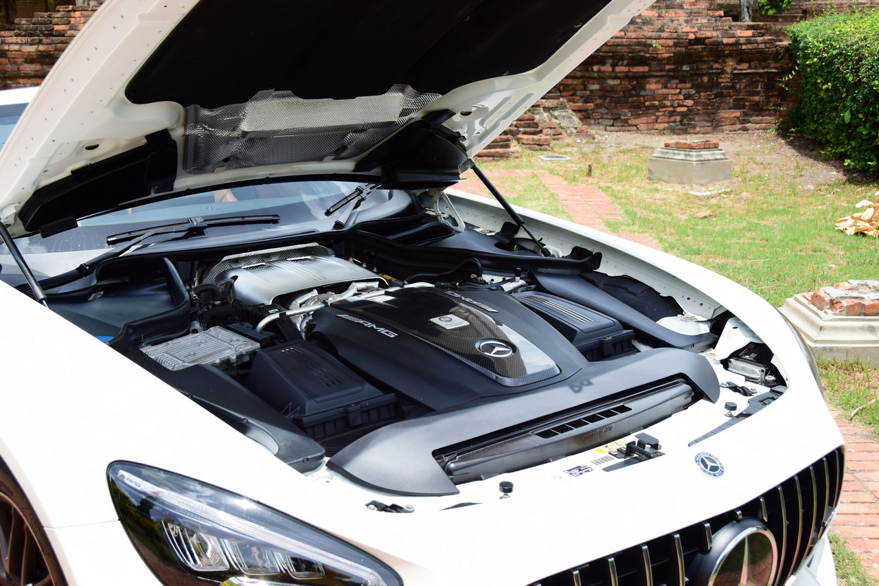 แล้วก็เชื่อเถอะว่าทั้งหมด ทั้งมวลที่มี มันไม่ได้สร้างความน่าสนใจมากเท่ากับเสียงกระหึ่มแหบต่ำจากเครื่องยนต์เบนซิน V8 Bi-Turbo ขนาด 4 ลิตร ซึ่งพกพาเรี่ยวแรงมาให้ใช้ถึง 557 แรงม้า พร้อมแรงบิดสูงสุดระดับ 680 นิวตันเมตร ส่งกำลังสู่ล้อหลังโดยชุดเกียร์อัตโนมัติ 7 สปีด (AMG Speedshift DCT 7G) ภายใต้การการันตรีอัตราเร่งจาก 0-100 กม./ชม. ใน 3.7 วินาที และความเร็วสูงสุดที่ทำได้ถึง 316 กม. /ชม. … ซึ่งด้วยความน่าสนใจเหล่านี้แหละครับ ที่ทำให้เราไม่รอช้า คว้ากุญแจโดดขึ้นรถเพื่อซึมซับสัมผัส มาถ่ายทอดเรื่องราวหลังพวงมาลัยให้ฟัง