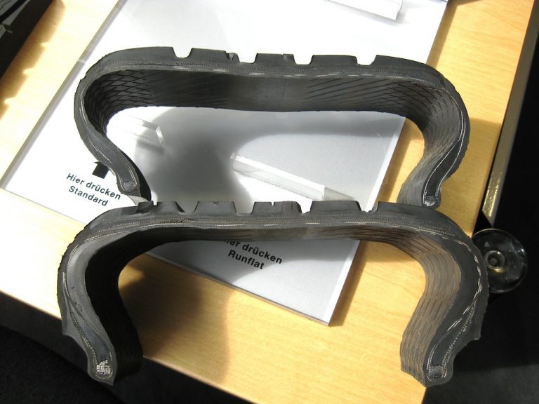 สำหรับยาง Run Flat Tire แปลตรงๆ พูดง่ายๆ ก็คือ “ยางที่ยังคงสามารถทำให้รถวิ่งได้แม้มีมีลม” นั่นเอง ด้วยเหตุเพราะส่วนหนึ่งของอุบัติเหตุเกิดขึ้นจาก “ยาง” เป็นโจทย์สำคัญ เช่น ยางรั่ว, ยางแตก ซึ่งในขณะที่ใช้ความเร็วอยู่ แล้วเกิดสูญเสียลมยางแบบกะทันหัน แน่นอนว่ารถต้องมีอาการ “เสียทรง” และอาจจะนำไปสู่การเกิดอุบัติเหตุร้ายแรงได้