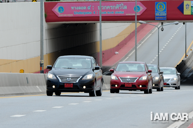 การทดสอบครั้งนี้ ทาง NISSAN จัดเตรียมรถทดสอบเฉพาะเครื่องยนต์ เบนซิน 1.8 ลิตร จำนวน 10 คัน ผมขอกล่าวถึงเครื่องยนต์เบนซิน 1.8 ลิตร รหัส MRA8DE ก่อนน่ะครับ เครื่องยนต์ดังกล่าวได้รับการพัฒนาขึ้นไปอีกขั้น ด้วยการเพิ่มช่วงชักกระบอกสูบผสานไปกับการทำงานของระบบวาล์วแปรผันคู่ Twin C-VTC (Twin Continuously-Variable Timing Control) เพิ่มระยะชักกระบอกสูบให้ยาวขึ้นทั้งฝั่งไอดีและไอเสีย เพื่อให้การเผาไหม้สมบูรณ์ยิ่งขึ้น และเคลือบแข็งระบบสปริงวาล์ว Diamond-like carbon coating ช่วยลดน้ำหนัก แรงเสียดทานและแรงเฉื่อยของวาล์ว เสริมประสิทธิภาพการทำงานของเครื่องยนต์ เงียบขึ้นและประหยัดน้ำมันมากขึ้น ความจุกระบอกสูบ 1,798 ซีซี แรงม้าสูงสุด 131 แรงม้าที่ 6000 รอบ/นาที แรงบิดสูงสุด 174 นิวตัน-เมตรที่ 3600 รอบต่อนาที ระบบขับเคลื่อนแบบ XTRONIC CVT