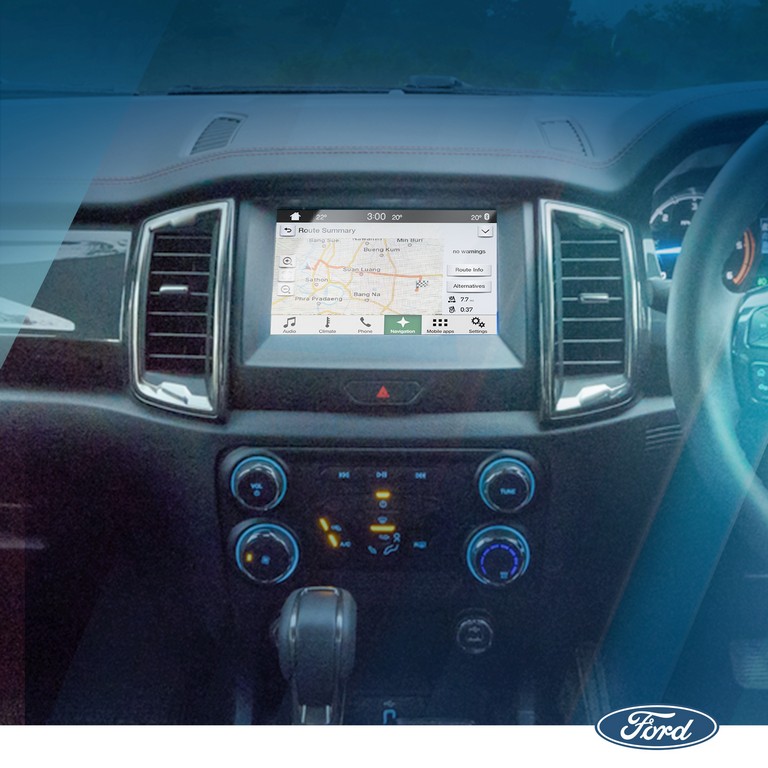 หากคุณกำลังมองหาเส้นทางกลับบ้านที่ใช้เวลาน้อยที่สุด คุณสามารถใช้แอปพลิเคชันนำทางในมือถือของคุณได้ผ่านระบบ SYNC จากฟอร์ด ด้วยการต่อมือถือของคุณผ่านสาย USB เลือกกดรูปสัญลักษณ์แอปพลิเคชันบนหน้าจอแสดงผล และเลือกแอปพลิเคชันนำทางของคุณจากรายชื่อที่ปรากฎ ระบบจะแสดงแผนที่เส้นทางบนหน้าจอแสดงผลและมีเสียงเตือนผ่านระบบเสียงของรถ สำหรับรถบางรุ่น คุณสามารถเลือกให้หน้าจอแสดงแผนที่เส้นทางบนแผงหน้าปัดได้ ซึ่งจะช่วยให้คุณไม่ต้องปล่อยมือออกจากพวงมาลัยและมีสมาธิกับท้องถนน