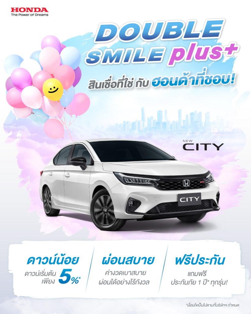 บริษัท ฮอนด้า ออโตโมบิล (ประเทศไทย) จำกัด จัดโปรโมชันพิเศษต้อนรับเทศกาลส่งความสุขส่งท้ายปี เพื่อให้ลูกค้าเป็นเจ้าของรถยนต์ฮอนด้าได้ง่ายขึ้น กับแคมเปญสุดพิเศษ “โปรแรงฮอนด้าส่งท้ายปี ข้อเสนอเดียวกับ Motor Expo” ด้วยข้อเสนอพิเศษที่แตกต่างกันไปในแต่ละรุ่น* ได้แก่ ดอกเบี้ยเริ่มต้น 0% หรือดาวน์ 0% หรือฮอนด้ าช่วยผ่อน นาน 12 เดือน รวมมูลค่าสูงสุดถึง 54,000 บาท* พร้อมรับ ฮอนด้า เอ็กซ์คลูซีฟ แคร์ (Honda Exclusive Care) ประกอบด้วย ฟรีประกันภัย 1 ปี พร้อมแพ็กเกจเช็กระยะ ค่าแรง ค่าอะไหล่ 5 ปี หรือ 100,000 กม. และฟรี Honda Ultimate Care (ฮอนด้า อัลติเมท แคร์) โปรแกรมการให้บริการพิเศษด้านคุณภาพรถยนต์ ขยายการรับประกันคุณภาพรถยนต์ใหม่และบริการช่วยเหลือฉุกเฉินบนท้องถนน24 ชั่วโมง เพิ่มอีก 2 ปี หรือ 40,000 กิโลเมตร ต่อจากการรับประกันคุณภาพรถใหม่ 3 ปี หรือ 100,000 กิโลเมตร รวมเป็น 5 ปี หรือ 140,000 กิโลเมตร (อย่างใดอย่างหนึ่งถึงก่อน) พิเศษสำหรับไลน์อัป อี:เอชอีวี รวมการรับประกันอายุการใช้งานแบตเตอรี่ไฮบริดถึง 10 ปี และรับประกันระบบไฮบริดทั้งระบบ 5 ปี ไม่จำกัดระยะทาง หรือทางเลือกพิเศษ Double Smile Plus สินเชื่อใหม่จาก ฮอนด้า ลีสซิ่ง ที่จะช่วยให้การออกรถยนต์ฮอนด้าคันใหม่ของคุณเป็นเรื่องง่ายๆ สบายๆ ดาวน์เริ่มต้นเพียง 5% สำหรับลูกค้าที่จองและรับรถยนต์ฮอนด้ารุ่นที่ร่วมรายการตั้งแต่วันที่ 1 พฤศจิกายน 2566 – 31 ธันวาคม 2566