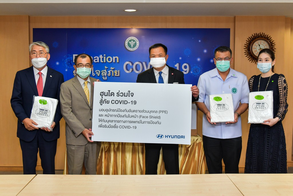 นายโตชิฮิเดะ อาโนะ ประธานบริษัท ฮุนได มอเตอร์ (ไทยแลนด์) จำกัด และ นายอี อุก-ออน เอกอัครราชทูตสาธารณรัฐเกาหลีประจำประเทศไทย ได้นำชุดป้องกันส่วนบุคคลและหน้ากากป้องกันใบหน้าจำนวนทั้งหมด 4,000 ชิ้น มอบให้กับนายอนุทิน ชาญวีรกูล รัฐมนตรีว่าการกระทรวงสาธารณสุข เพื่อให้นำอุปกรณ์ดังกล่าวให้บุคคลากรทางแพทย์ใช้ในการดูแลและรักษาผู้ป่วย