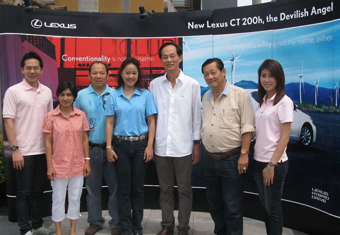 สุทธิกัญญา ไทยเพ็ชร ผู้บริหาร บริษัท เล็กซ์ซัส กรุงเทพ จำกัด (กลาง) พร้อมด้วย โยธิน เนื่องจำนง กรรมการบริหาร บริษัท โมเดอร์นฟอร์มกรุ๊ป จำกัด (มหาชน) (ที่ 3 จากขวา) ให้การต้อนรับลูกค้าเลกซัส อาทิ เกียรติ เอื้อชูเกียรติ, ภัทร คชะภูติ ที่มาร่วมกิจกรรม “Lexus Taste Of Luxury” สัมผัสประสบการณ์ความสมบูรณ์แบบแห่งการขับขี่ของรถยนต์เลกซัส CT200h แฮชท์แบคไฮบริดคันแรกของโลก ซึ่งถือเป็นอีกหนึ่งกิจกรรมที่ได้จัดขึ้นเพื่อเอาใจลูกค้าเลกซัสให้ได้มีโอกาสร่วมสัมผัสประสบการณ์สุดพิเศษ ณ โมเดิร์นฟอร์ม สาขาคริสตัล ดีไซน์ เมื่อเร็ว ๆ นี้