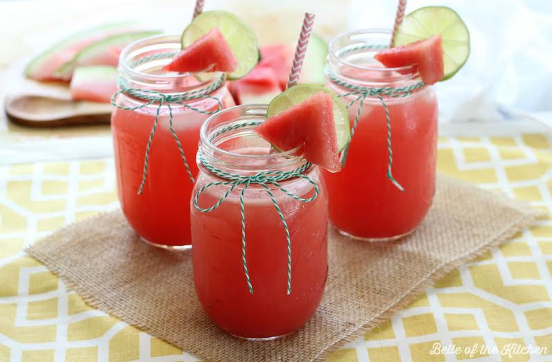 นำแตงโมและน้ำมะนาวใส่ลงในในเครื่องผสมจากนั้นปั่นให้ละเอียดเป็นเนื้อเดียวกัน จากนั้นเทน้ำตาลและน้ำเปล่าลงไป คนจนส่วนผสมทุกอย่างเข้ากันดี เสิร์ฟพร้อมน้ำแข็งเย็น ๆ รับรองชื่นใจสุด ๆ เลยล่ะค่ะ