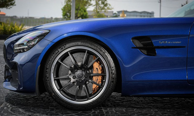 ส่วนมุมมองด้านข้างมากับความหล่อเหลาจากชุดเบรก AMG High-Performance Composite Brake ที่สะดุดตาด้วยคาลิปเปอร์เบรกโทนสีเหลือง สวมทับด้วยล้ออัลลอยด์ AMG แบบ 10 ก้าน ด้านหน้าขนาด 19 นิ้วจับคู่กับยาง 275/35 ZR19 และด้านหลังขนาด 20 นิ้ว พร้อมยาง 325/30 ZR20
