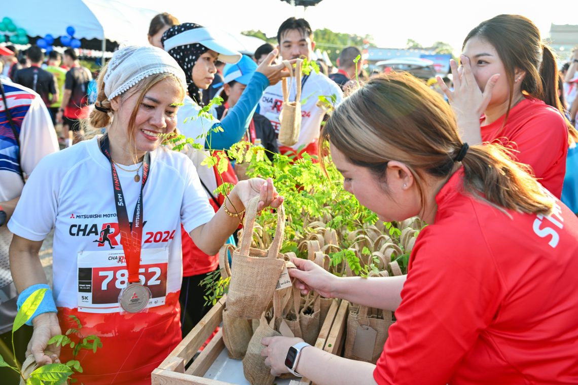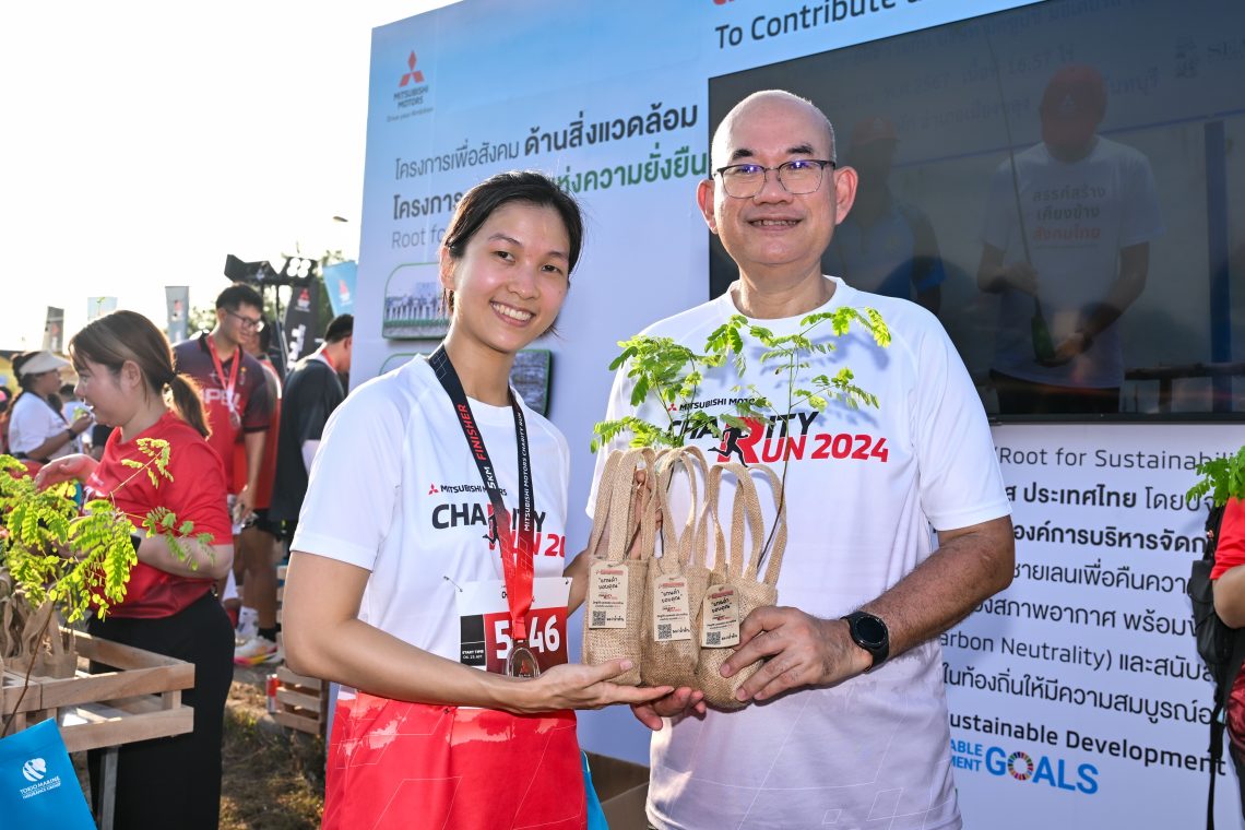 สำหรับงานวิ่งการกุศล “มิตซูบิชิ มอเตอร์ส ชวนกันวิ่ง ชวนกันให้ ครั้งที่ 5” ในปีนี้ มีผู้เข้าร่วมงานกว่า 6,600 คน พร้อมการดำเนินงานที่คำนึงถึงสิ่งแวดล้อม อาทิ เสื้อนักวิ่งที่ผลิตจากวัสดุรีไซเคิล และส่งเสริมการคัดแยกขยะแต่ละประเภท รวมถึงขยะรีไซเคิล อีกทั้งยังมีบูธนำเสนอโครงการเพื่อสังคมตามแกนหลักทั้ง 3 ด้านของบริษัทฯ และกิจกรรมแจกกล้าไม้ให้แก่ผู้ร่วมงานรวมทั้งสิ้น 3,000 ต้น เพื่อร่วมเป็นส่วนหนึ่งในกิจกรรมส่งเสริมด้านสิ่งแวดล้อม สานต่อโครงการ “รากกล้าแห่งความยั่งยืน” ของบริษัท