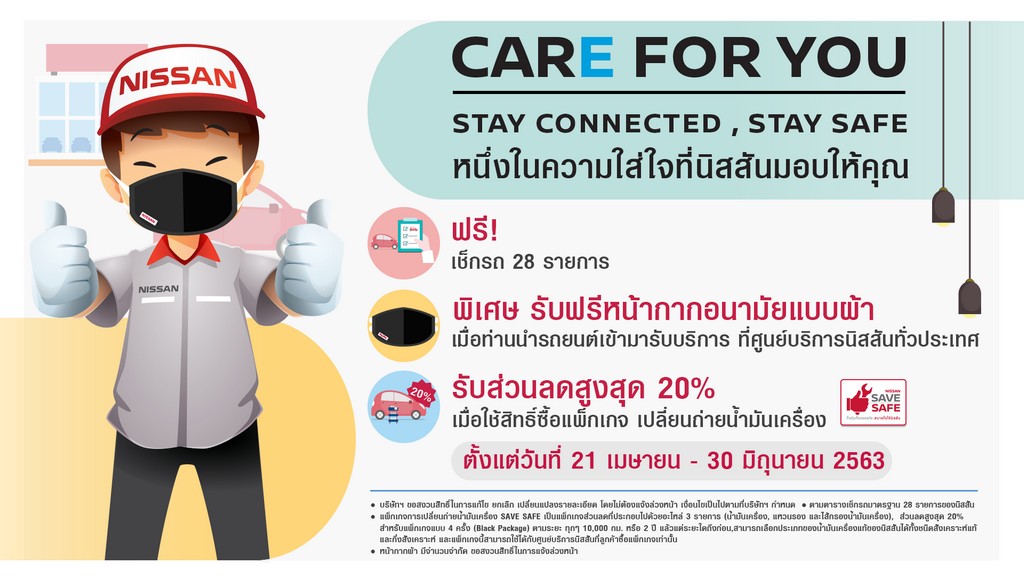 นิสสัน มอเตอร์ ประเทศไทย เปิดตัวโครงการ “Care for You” แทนความห่วงใยจากนิสสัน มาตรการเพื่อช่วยเหลือและยกระดับความปลอดภัยให้แก่ลูกค้า ในช่วงที่สถานการณ์ของโรคโควิด-19 กำลังระบาด