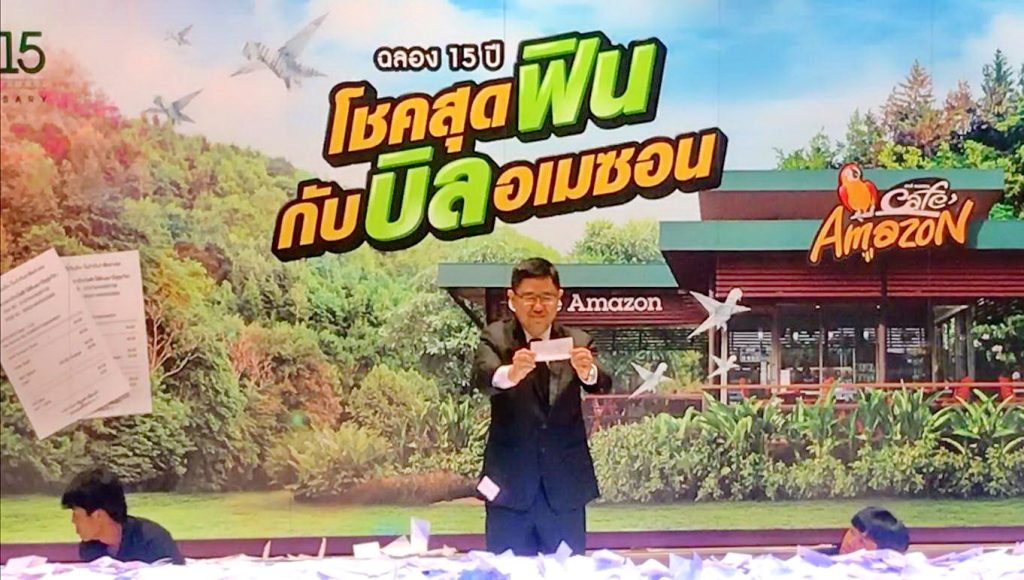 นายบุรณิน รัตนสมบัติ ผู้ช่วยกรรมการผู้จัดการใหญ่ธุรกิจหล่อลื่น บริษัท ปตท. จำกัด (มหาชน) เป็นประธานในการจับรางวัลแก่ผู้โชคดีจากกิจกรรม “โชคสุดฟินกับบิลอเมซอน” ฉลองครบรอบ 15 ปี ซึ่งจัดขึ้นระหว่างวันที่ 15 มิถุนายน ถึง 15 กันยายน 2560 ที่ผ่านมา โดยมอบรางวัลรถยนต์ Mercedes-Benz รุ่น C350 e Plug – in Hybrid จำนวน 1 รางวัล ทองคำแท่ง น้ำหนัก 5 บาท จำนวน 20 รางวัล และทองคำแท่ง น้ำหนัก 1 บาท จำนวน 100 รางวัล รวมทั้งสิ้น 121 รางวัล มูลค่า6,772,000 ล้านบาท แทนคำขอบคุณที่ผู้บริโภคไว้วางใจใช้บริการร้านคาเฟ่ อเมซอนด้วยดีเสมอมา