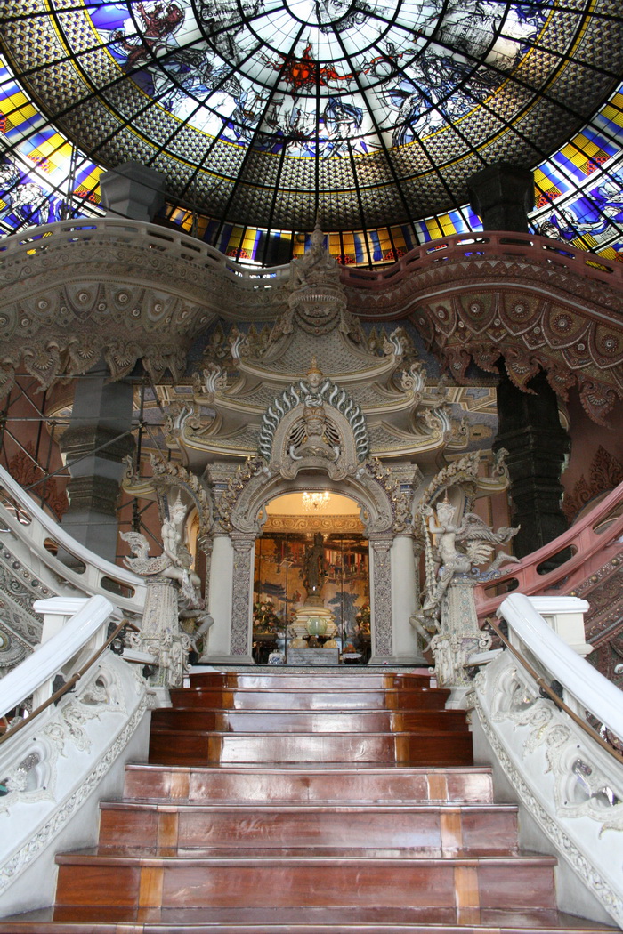 เริ่มจากชั้นใต้ดินหรือชั้นบาดาล จัดแสดงนิทรรศการความเป็นมาและการก่อสร้างพิพิธภัณฑ์ รวมถึงจัดแสดงวัตถุโบราณของไทยและจีนอีกด้วย ส่วนภายในอาคารทรงโดมหรือโลกมนุษย์ จัดแสดงโบราณวัตถุจากทางตะวันตกและตะวันออก ภายในตกแต่งแบบผสมผสานหลากรูปแบบอย่างวิจิตรบรรจงและคงคุณค่ายิ่งนัก ส่วนชั้นบนภายในท้องช้างหรือสวรรค์ชั้นดาวดึงส์ ประดิษฐานพระบรมสารีริกธาตุและพระพุทธรูปสมัยต่างๆ ไว้อย่างงดงาม