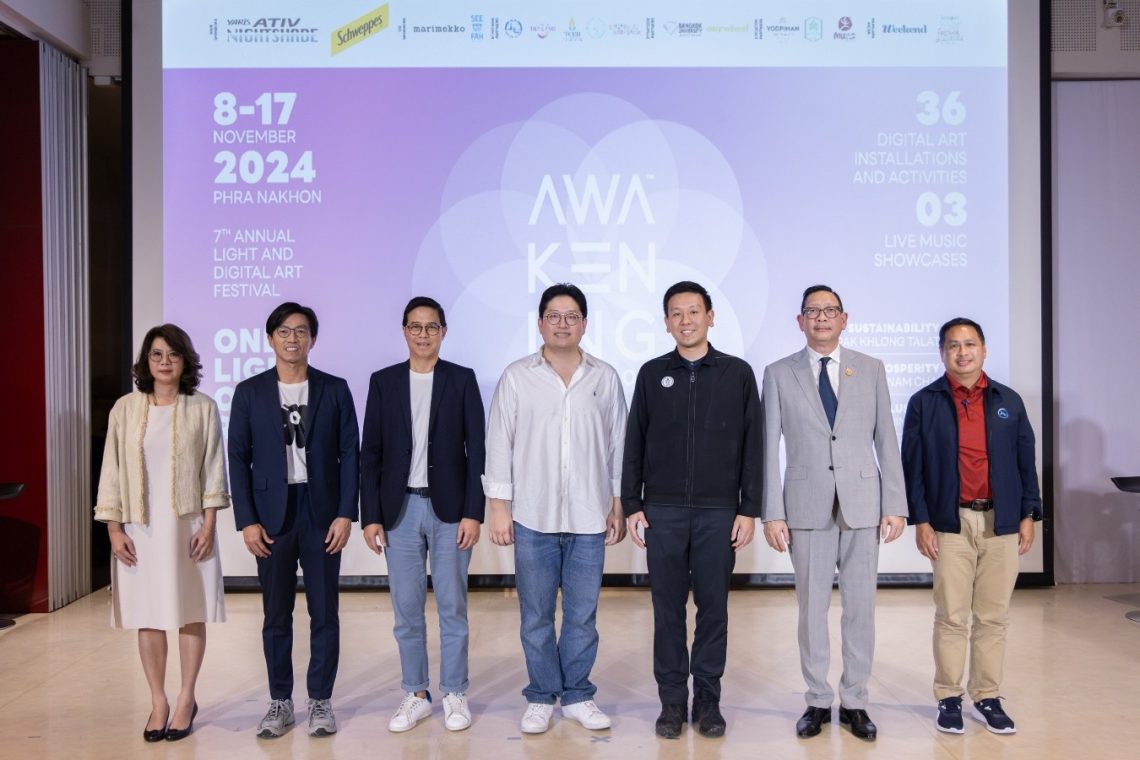 นายณัทธร ศรีนิเวศน์ ผู้ช่วยกรรมการผู้จัดการใหญ่ บริษัท โตโยต้า มอเตอร์ ประเทศไทย จำกัด พร้อมด้วย คณะผู้จัดงานเทศกาล Awakening Festivals รวมถึงกรุงเทพมหานคร การท่องเที่ยวแห่งประเทศไทย (ททท.) สํานักงานส่งเสริมการจัดประชุมและนิทรรศการ (องค์การมหาชน) หรือ ทีเส็บ และพันธมิตรทั้งภาครัฐและเอกชน จับมือสร้างปรากฏการณ์แห่งแสงสีกับ “Awakening Bangkok 2024” เทศกาลแสงไฟและศิลปะดิจิทัลประจำปีของกรุงเทพฯ ที่กลับมาปลุกเขตพระนครให้สว่างไสวด้วยไฟแห่งแรงบันดาลใจและความคิดสร้างสรรค์อีกครั้ง ภายใต้ธีม “One Light, One Rises ปลุกไฟย่าน เติมไฟคน” ระหว่างวันที่ 8-17 พฤศจิกายน 2567 ตั้งแต่เวลา 18.00-23.00 น.