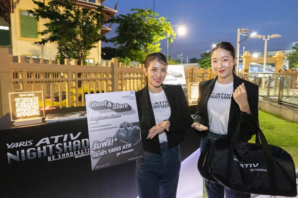 สามารถสัมผัสรถ TOYOTA YARIS ATIV NIGHTSHADE ได้ที่บริเวณมิวเซียมสยามเดินทางสะดวกเพียงแค่ลงสถานี MRT สนามไชย พร้อมกับรับของที่ระลึกพิเศษได้ง่ายๆ เพียงร่วมกิจกรรมสุดพิเศษ “Shoot & Share: Snap Your SHADE” ถ่ายภาพกับผลงานในสไตล์คุณพร้อมลงทะเบียนแล้วแชร์ลงโซเชียลมีเดีย และใส่แฮชแท็ก #TOYOTA #YARISATIVNightShade #BeShadesetterสไตล์ที่คุณกำหนด หรือสัมผัสและรับข้อเสนอพิเศษได้ที่โชว์รูมโตโยต้าทั่วประเทศ