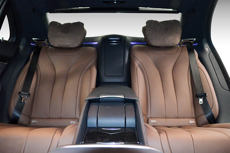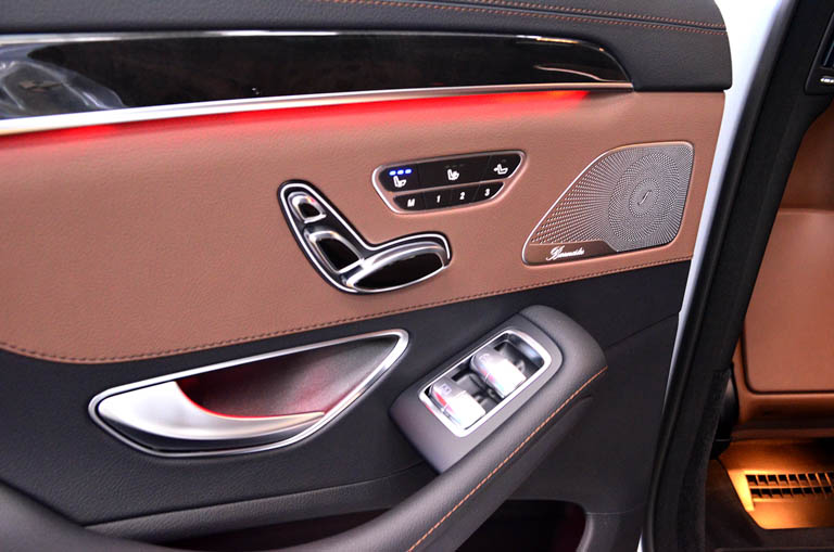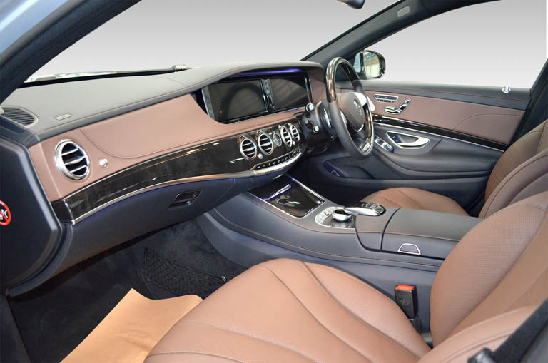 พร้อมฟังก์ชั่นใหม่ล่าสุดกับระบบ Split View for COMAND ที่สามารถแยกการแสดงภาพระหว่างผู้ขับขี่และผู้โดยสาร โดยการประมวลภาพในหน้าจอเดียวกัน พร้อมหน้าจอด้านหลังขนาด 10 นิ้ว 2 จอแยกออกซ้าย-ขวาและหูฟังไร้สายลายไม้แบบ Designo High Gloss เบาะหุ้มหนัง Nappa ระบบฟังก์ชั่น Ambient Lighting (หรือไฟเรืองแสงภายในห้องโดยสาร) ที่สามารถปรับรูปแบบได้ถึง 7 สี และกล้องรอบคันแบบ 360 องศา เป็นต้น นอกจากนี้ยังมีออฟชั่นพิเศษ Comfort Package ซึ่งมีที่รองรับช่วงขาเพิ่มเติมสำหรับผู้โดยสารด้านหลังแบบเดียวกับที่นั่งบนเครื่องบินระดับเฟิร์สคลาส ปรับด้วยระบบไฟฟ้าพร้อมหน่วยความจำ รวมทั้งระบบ Ventilation Seat สามารถปรับอุณหภูมิภายในเบาะทุกที่นั่ง โดยจะมีระบบให้ความเย็นสำหรับเบาะทั้ง 4ตัว พร้อมระบบปรับอากาศ Air Balance Package ที่จะช่วยทำให้บรรยากาศภายในห้องโดยสารหอมอบอวลไปด้วยน้ำหอมกลิ่นพิเศษเฉพาะ S-Class ที่มีกลิ่นหอมคุณภาพสูงให้เลือกถึง 4 กลิ่น ได้แก่ NIGHTLIFE MOOD, DOWNTOWN MOOD, SPORTS MOOD, FREESIDE MOOD ซึ่งจะถูกจัดเก็บไว้อย่างเป็นสัดส่วนในกล่องเก็บสัมภาระ อีกทั้งจะมีเซนเซอร์ตรวจจับความสมดุลของอากาศภายในห้องโดยสารที่มาควบคู่กับระบบฟอกอากาศ Oxygen Ionisation และออฟชั่นพิเศษกับระบบเพื่อความบันเทิงภายในห้องโดยสาร อาทิ ชุดเครื่องเสียง Burmester Sound System ที่พกพาลำโพงสมรรถนะสูงมาถึง 13 ตัวและพลังขับ 590 วัตต์ ให้ผู้โดยสารได้ดื่มด่ำกับเสียงเพลงที่ไพเราะอย่างเต็มอารมณ์จากนวัตกรรมในระดับเฟิร์สคลาส