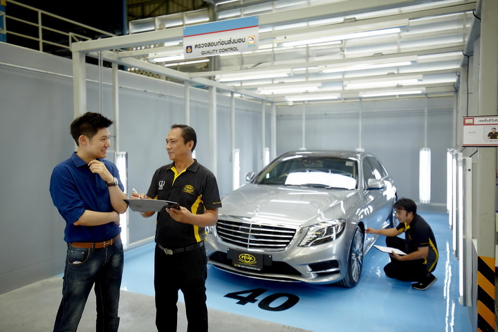สำหรับส่วนที่ 2 ศูนย์บริการซ่อมสีและตัวถัง ประกอบด้วยทีมงานทั้งสิ้น 50 คน ด้วยมาตรฐานของสีกลาซูริทหรือสีนกแก้วที่ได้รับการยอมรับทั่วโลก ประกอบกับประสบการณ์การทำงานของช่างผสมสีและช่างพ่นสีที่มีมากกว่า 25 ปี ความพร้อมของอะไหล่ตัวถังที่พร้อมส่งให้อย่างรวดเร็วจากคู่ค้าทางธุรกิจ ย่อมการันตีได้ถึงความรวดเร็วและคุณภาพของงานสีที่ลูกค้าจะได้รับความพึงพอใจสูงสุดอย่างแน่นอน