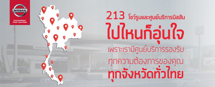 มร.คะซุทากะ นัมบุ ประธาน บริษัท นิสสัน มอเตอร์ (ประเทศไทย) จำกัด กล่าวว่าในฐานะผู้นำนวัตกรรมยานยนต์ที่สร้างความตื่นเต้นเร้าใจ และเป็นหนึ่งในแบรนด์รถยนต์ชั้นนำที่ได้รับความไว้ว้างใจจากลูกค้าทั่วโลกนิสสันให้ความสำคัญต่อการเสริมสร้างภาพลักษณ์ที่ดีของแบรนด์นิสสันอย่างต่อเนื่อง โดยเฉพาะตลาดในประเทศไทย ที่นิสสันมีเป้าหมายสร้างความแข็งแกร่งของแบรนด์นิสสันในใจของลูกค้าให้มากยิ่งขึ้น บริษัทจึงให้ความสำคัญต่อการรักษาและสร้างความพึงพอใจสูงสุดของลูกค้า ทั้งด้านผลิตภัณฑ์และการบริการ โดยในปีนี้บริษัทฯ ให้ความสำคัญกับการพัฒนาโชว์รูมและศูนย์บริการทั้งด้านปริมาณและคุณภาพ ซึ่งในด้านปริมาณขณะนี้นิสสัน มีความยินดีที่จะแจ้งให้ลูกค้าทราบว่า จากการเปิดโชว์รูมและศูนย์บริการแห่งที่ 213 ที่อำเภอแม่สะเรียง จ.แม่ฮ่องสอน ในช่วงกลางเดือนสิงหาคมที่ผ่านมา ทำให้นิสสันมีศูนย์บริการลูกค้าครบทั้ง 77 จังหวัด และบริษัทยังมีเป้าหมายที่จะขยายการบริการให้ครอบคลุมหัวเมืองใหญ่เพิ่มขึ้น ซึ่งคาดว่าภายในสิ้นปีงบประมาณ 2558 จะมีทั้งหมด 220 แห่ง และจำนวน 230 แห่งในปี 2559
