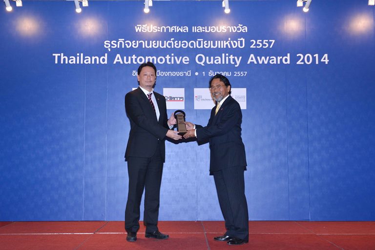 บริษัท บริดจสโตนเซลส์ (ประเทศไทย) จำกัด ได้รับรางวัล “ธุรกิจยานยนต์ยอดนิยม ด้านผลิตภัณฑ์เกี่ยวเนื่องกับรถยนต์-ยางรถยนต์” หรือ “THAILAND AUTOMOTIVE QUALITY AWARD – Outstanding Satisfaction for Tyre” ประเภท Excellence Award
