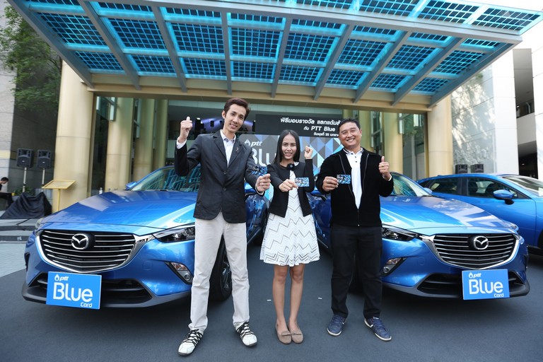 โดยกิจกรรมดังกล่าวจัดขึ้นเมื่อวันที่ 1 กันยายน – 30 พฤศจิกายน 2559 ชิงรางวัลรถ Mazda CX-3 จำนวน 3 คัน รางวัลเติมน้ำมันฟรีทั้งปี จำนวน 60 รางวัล และดื่มเครื่องดื่มที่ Cafe Amazon ฟรีทั้งปี จำนวน 60 รางวัล รวมมูลค่ากว่า 6 ล้านบาท เพื่อแสดงความขอบคุณและคืนกำไรให้กับสมาชิกบัตร PTT Blue Card ที่สนับสนุน ปตท. ด้วยดีมาตลอด ทั้งนี้ มีผู้โชคดีร่วมรับรางวัลทั้งหมด 123 ท่านจากทั่วประเทศ ซึ่งผู้ได้รับรางวัลที่หนึ่งคือ คุณโยธิน มหาพรหม จังหวัดนนทบุรี, คุณธิติมา สิมาพา จังหวัดอุดรธานี และคุณลิปิกร ขวาละคร จังหวัดสกลนคร