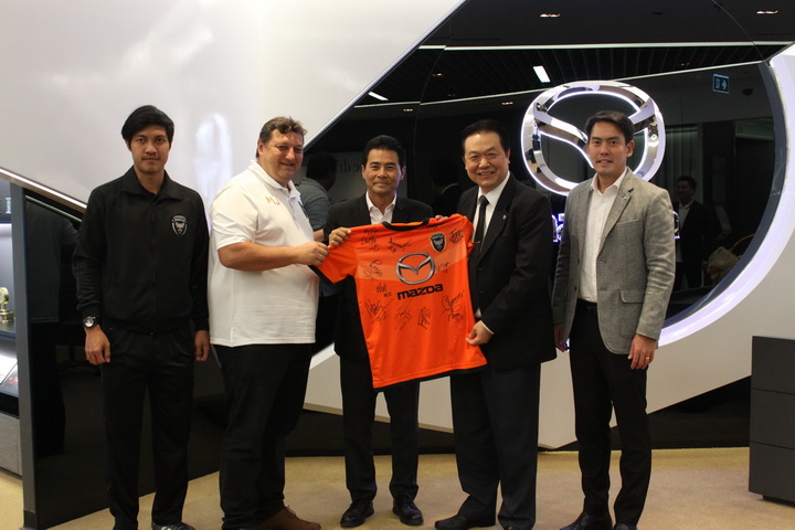 ที่เดินทางมาสวัสดีปีใหม่ และขอบคุณ มาสด้า ( Mazda ) ที่ให้การสนับสนุนส่งเสริมฟุตบอลไทยและยกระดับวงการฟุตบอลเป็นอย่างดีมาโดยตลอด 4 ปีที่ผ่านมา อีกทั้งทางสโมสรฯ ได้มอบเสื้อแข่งฤดูกาลปี 2017 ที่นักเตะทุกคนร่วมลงลายเซ็นเพื่อเป็นที่ระลึกด้วย ณ สำนักงานใหญ่ บริษัท มาสด้า เซลส์ (ประเทศไทย) จำกัด