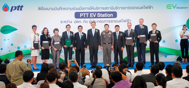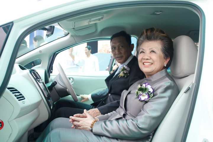 นางเพียงใจ แก้วสุวรรณ รองกรรมการผู้จัดการใหญ่ สายงานรัฐกิจสัมพันธ์ และนางพิมพร ศิริวรรณ รองกรรมการผู้จัดการใหญ่ สายงานประชาสัมพันธ์และซีเอสอาร์ บริษัท นิสสัน มอเตอร์ (ประเทศไทย) จำกัด ให้ข้อมูลพร้อมสาธิตวิธีการชาร์จรถยนต์ไฟฟ้านิสสัน ลีฟ ซึ่งเป็นรถยนต์ไฟฟ้า 100% และไร้มลพิษ ให้กับ พลเอก อนันตพร กาญจนรัตน์ รัฐมนตรีว่าการกระทรวงพลังงาน เนื่องในโอกาสเป็นประธานพิธีลงนามบันทึกความร่วมมือการให้บริการสถานีบริการชาร์จรถยนต์ไฟฟ้า (PTT EV Station) ที่ เดอะ คริสตัล เอสบี ถ.ชัยพฤกษ์ โดยมีนายเทวินทร์ วงศ์วานิช ประธานเจ้าหน้าที่บริหารและกรรมการผู้จัดการใหญ่ บริษัท ปตท. จำกัด (มหาชน) และผู้บริหาร ปตท. ร่วมด้วย ทั้งนี้ รมว.พลังงาน ยังให้ความสนใจ และทดลองขับรถยนต์นิสสัน ลีฟ