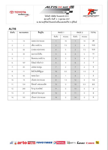 สำหรับการแข่งขัน รถยนต์ทางเรียบระดับนานาชาติ บุรีรัมย์ ยูไนเต็ด ซุปเปอร์ จีที 2014 บริษัท โตโยต้า มอเตอร์ ประเทศไทย จำกัด ได้ส่งทีมแข่งของคนไทยในนาม โตโยต้า ทีม ไทยแลนด์ โดยมีนักแข่งฝีมือเยี่ยมอย่าง “ณัฐวุฒิ เจริญสุขวัฒนะ” และ “ทาเคชิ ซึจิย่า” พร้อมรถโตโยต้า 86 เข้าร่วมการแข่งขันในรุ่น จีที 300 โดยทำเวลาในรอบคัดเลือกเข้ามาเป็นอันดับ 22 และทำผลงานได้ดีที่สุดในอันดับที่ 14 ในรอบชิงชนะเลิศ ซึ่งอยู่ในระดับที่น่าพอใจ และนำความภาคภูมิใจมาให้คนไทย ในฐานะนักกีฬา มอเตอร์ สปอร์ต ไทย ในสนามแข่งขันระดับสากล