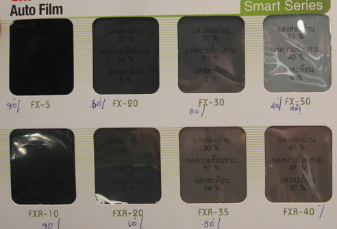 หลักการพิจารณาเลือก ฟิล์มกรองแสง ก็ไม่ยากครับ  ดูเรื่องประสิทธิภาพในการป้องกันความร้อนจากแสงแดดเป็นหลัก  ไม่ใช่การป้องกันจากหลอดไฟหรือแสงอินฟราเรด ดูที่ค่าการป้องกันรังสี UV ซึ่งคุณภาพฟิล์มที่ดีจะป้องกันได้เกือบ 100% ดูค่าการสะท้อนแสงของรถรอบคันไม่ควรจะเกิน 30% ขณะที่ฟิล์ม บานหน้าจะมีค่าการสะท้อนแสงไม่เกิน 10% เท่านั้น สุดท้ายเป็นเรื่องเปอร์เซ็นต์ ของแสงส่องผ่าน และความเข้มความใสของฟิล์ม ควรพิจารณาเลือกเอาตามความพอใจ โดยกระจกบานหน้าควรจะใช้ฟิล์มใสเพื่อให้มีทัศนวิสัยในการขับขี่ที่ดี