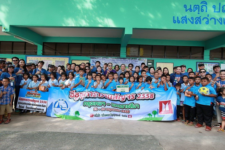 จากนั้นแวะเติมพลังกันที่ร้านอาหาร “สวนเมืองพร” ตั้งอยู่บนเขายายเที่ยง มองเห็นแนวกว้างของเขื่อนลำตะคอง จุดชมวิวที่ได้รับการยกย่องว่าเป็นสวิตเซอร์แลนด์เมืองไทย พร้อมอิ่มเอมกับอาหารนานาชนิดท่ามกลางไม้ดอกไม้ประดับนานาพันธุ์ ซึ่งจัดไว้ในรูปแบบซูเปอร์มาร์เก็ตต้นไม้ ให้เลือกซื้อติดไม้ติดมือก่อนออกเดินทางสู่จุดหมายต่อไป “วัดธรรมจักรเสมาราม” ตั้งอยู่ที่ตำบลเสมา อำเภอสูงเนิน พร้อมเพรียงกันกราบนมัสการพระพุทธรูปปางไสยาสน์หรือพระนอนหินทราย ซึ่งก่อด้วยหินทรายที่มีความเก่าแก่และใหญ่ที่สุดของประเทศไทย ขนาดความยาว 13.30 เมตร สูง 2.80 เมตร สร้างขึ้นในสมัยทวาราวดีในราวปี พ.ศ.1200 ซึ่งสมาชิกประชาคมอีซูซุต่างร่วมใจกันบริจาคเงินเพื่อถวายผ้าห่มพระนอนหินทราย สร้างความปลาบปลื้มใจอิ่มบุญกันถ้วนหน้า กิจกรรมต่อมาขบวนคาราวานอีซูซุมุ่งหน้าสู่ “โรงเรียนบ้านทะเล (เสมาประชาสรรค์)” เพื่อบริจาคเงินพร้อมมอบอุปกรณ์การเรียนและอุปกรณ์กีฬา ร่วมแจกไอศกรีมกะทิหอมหวานให้กับน้องๆ และน้องๆ ก็ได้จัดเตรียมการแสดงพิเศษ “รำดอกบัว” ด้วยรอยยิ้มที่สดใส ทำเอาเหล่าบรรดาลูกค้าอีซูซุต่างยิ้มแก้มปริไปตามๆ กัน
