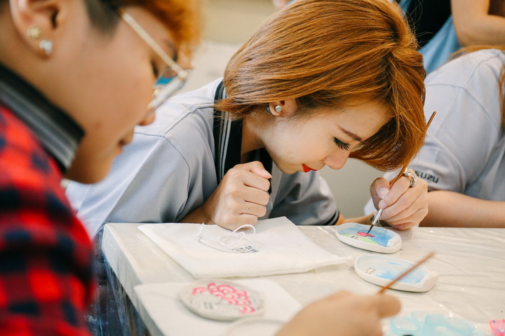 จุดหมายแรกอยู่ที่ ซอยเสรีไทย 17 ซึ่งเป็นที่ตั้งของ “มูลนิธิบ้านนกขมิ้น” องค์กรเอกชนที่ให้การอุปการะช่วยเหลือเด็กกำพร้า เด็กเร่ร่อน เด็กด้อยโอกาส ในการพัฒนา เปลี่ยนแปลง รวมถึงการเสริมสร้างความแข็งแกร่งด้านจิตใจ เพื่อเตรียมพร้อมให้กับเด็กน้อยเหล่านี้ออกมาเผชิญกับโลกกว้างได้อย่างเข็มแข็ง โดยมูลนิธิให้การดูแลและอบรมเด็กๆ ในระบบครอบครัว โดยคณะสื่อมวลชนได้นำไอศกรีมไปแจกให้เด็กๆ ได้รับประทานกันอย่างเอร็ดอร่อย พร้อมยังได้ร่วมบริจาคเงิน สดและสิ่งของเครื่องใช้ ให้กับมูลนิธิฯ โดยมี คุณปัญญา ไผ่แก้ว รองผู้อำนวยการ มูลนิธิฯ เป็นผู้รับมอบ จากนั้นจึงเดินทางต่อไปยังซอยปรีดีพนมยงค์ 26 สู่ สตูดิโอ “Tree Ra Chin” (ทีละชิ้น) ร้านเซรามิคแฮนด์เมดสุดชิค เพื่อร่วมเวิร์คช็อปเพ้นท์จานรองแก้วเซรามิค ที่ทางร้านได้บรรจงปั้นออกมาทีละชิ้น ให้สื่อมวลชนทุกคนได้รื้อฟื้นวิชาศิลปะที่เคยร่ำเรียนกันมาตอนวัยเยาว์ออกมาบรรจงตวัดปลายพู่กันสร้างสรรค์ออกมาเป็นผลงานชิ้นโบว์แดงอย่างสุดฝีมือ
