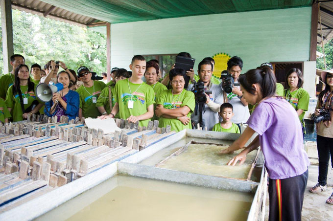 บรรยากาศในศูนย์อนุรักษ์ช้างไทย เริ่มต้นด้วยการชมการสาธิตทำกระดาษสาจากมูลช้าง นำมาซึ่งผลผลิตเป็นสินค้าที่ระลึกหลากหลายรูปแบบ ไม่ว่าจะเป็นกระดาษโน๊ต การ์ดอวยพร กระดาษห่อของขวัญ ฯลฯ นอกจากกิจกรรมเพิ่มความสุข สนุกทุกครั้งที่ร่วมเดินทางกับอีซูซุแล้ว เหล่าสมาชิกประชาคมอีซูซุยังได้ร่วมบริจาคเงินและอาหาร มอบให้แก่โรงพยาบาลช้างประจำศูนย์อนุรักษ์ช้างไทย โดยมีสัตวแพทย์หญิงปิติกาญจน์ บำเพ็ญผล เป็นผู้แทนรับมอบ ก่อนเข้าชมการแสดงของช้างแสนรู้กว่า 10 เชือก โดยมี “ใบตอง” ช้างน้อยนักแสดงนำที่มีลีลาท่าทางน่ารักน่าชัง ทำตามคำสั่งได้อย่างแม่นยำ เรียกเสียงปรบมือและเสียงหัวเราะ สร้างรอยยิ้มให้กับทุกคนได้เป็นอย่างดีตลอดเวลา 45 นาที สำหรับการแสดงช้างจะมี 2 รอบในวันธรรมดา คือ 10.00 น. และ 11.00 น. ส่วนวันเสาร์ อาทิตย์ และวันหยุดนักขัตฤกษ์ จะเพิ่มรอบ 13.30 น. อีก 1 รอบ ค่าเข้าชม ผู้ใหญ่ 80 บาท ถ้ารวมรถรางนำเที่ยวภายในศูนย์อนุรักษ์ฯ ก็จะคิดท่านละ 100 บาท ส่วนเด็ก 40 บาท รายละเอียดเพิ่มเติมติดต่อได้ที่ www.thailandelephant.org