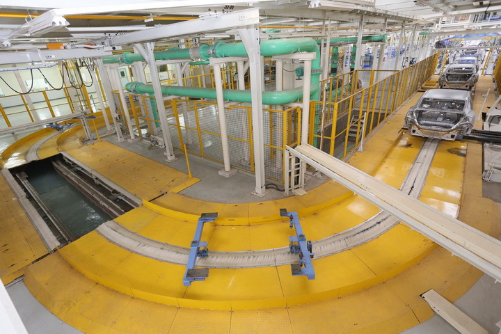 มีระบบสายพานลำเลียงชิ้นส่วนที่ขับเคลื่อนด้วยพลังน้ำ (Water Conveyor) มาใช้ในการลำเลียงชิ้นส่วนตัวถัง