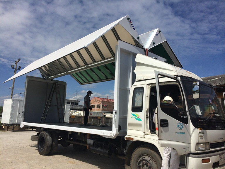 – ตู้บรรทุกแบบปีกนก ซึ่งการขนส่งด้วยตู้แบบปีกนก ช่วยทำให้การขนถ่ายสินค้าได้รวดเร็ว และไม่ติดปัญหารถ โฟล์คลิฟต์ชนด้านบนของโครงรถตู้บรรทุก เนื่องจากประตูปีกนกเปิดได้กว้าง