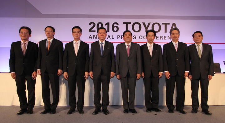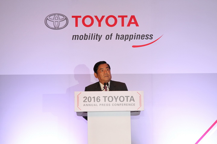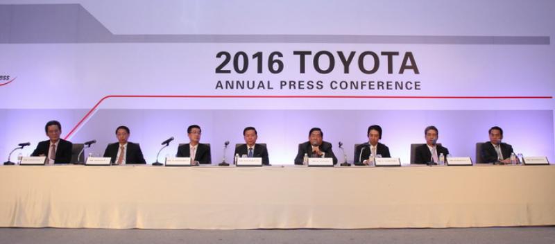 มร.เคียวอิจิ ทานาดะ เจ้าหน้าที่บริหาร บริษัท โตโยต้า มอเตอร์ คอร์ปอเรชั่น / กรรมการผู้จัดการใหญ่ บริษัท โตโยต้า มอเตอร์ เอเชีย แปซิฟิค มาร์เก็ตติ้ง แอนด์ เซลส์ / กรรมการผู้จัดการใหญ่ บริษัท โตโยต้า มอเตอร์ เอเชีย แปซิฟิค เอ็นจิเนียริ่ง แอนด์ แมนูแฟคเจอริ่ง / กรรมการผู้จัดการใหญ่ บริษัท โตโยต้า มอเตอร์ ประเทศไทย จำกัด แถลงสถิติการจำหน่ายรถยนต์ปี 2558 พร้อมคาดการณ์ตลาดรถยนต์ไทยปี 2559 เมื่อวันที่ 21 มกราคม 2559 ณ ห้องบอลรูม โรงแรมโอกุระ กรุงเทพฯ